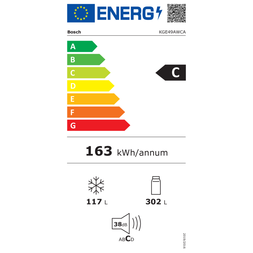 Jaarlijks energieverbruik 163 kWh