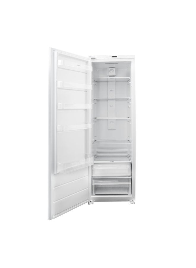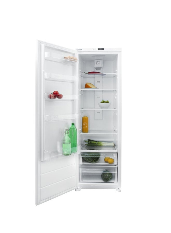 De Inventum inbouw koeler IKK1785S is geschikt voor een standaard nismaat van 178 cm en heeft een netto inhoud van 294 liter. Het is een koeler met energieklasse F. Door het Fresh Cooling System is de temperatuur in de koeler overal gelijk. Met de superkoelenstand kun je voedsel snel koelen. Door de ideale temperatuur en de aangepaste luchtvochtigheid in de verslade worden groente en fruit perfect bewaard. De koeler heeft 5 draagplateaus en onderin 2 transparante lades. Met 4 deurvakken, 1 flessenvak en 1 eierrekje berg je al je etenswaren netjes op. Deze onderdelen zijn eenvoudig te verwijderen, zodat je ze goed kunt schoonmaken.