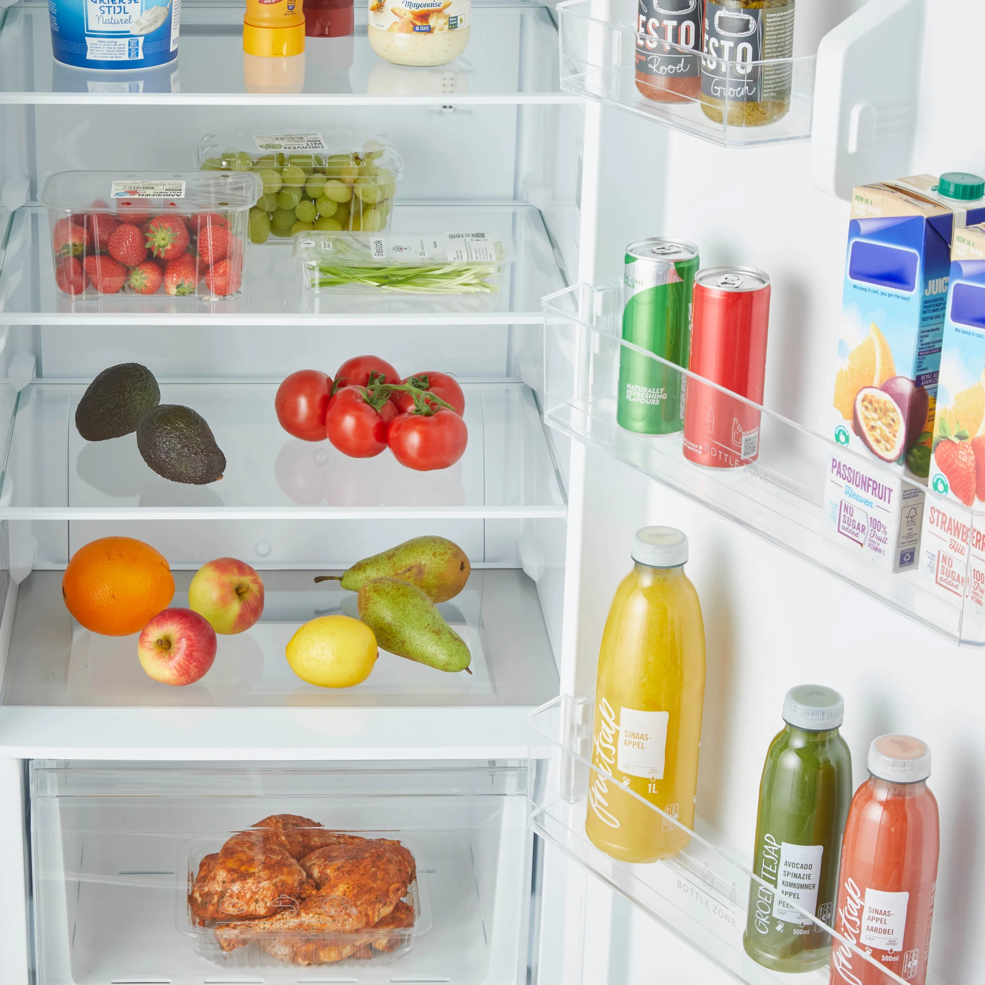 Dit systeem verspreidt de gekoelde lucht door het hele apparaat. Zo blijft de temperatuur op alle niveaus gelijk en maakt het niet uit op welke hoogte je iets neerlegt. De hele koeler is door het Fresh Cooling System ook weer sneller op temperatuur als de deur open is geweest. Daardoor blijven al je etenswaren lekker lang vers.