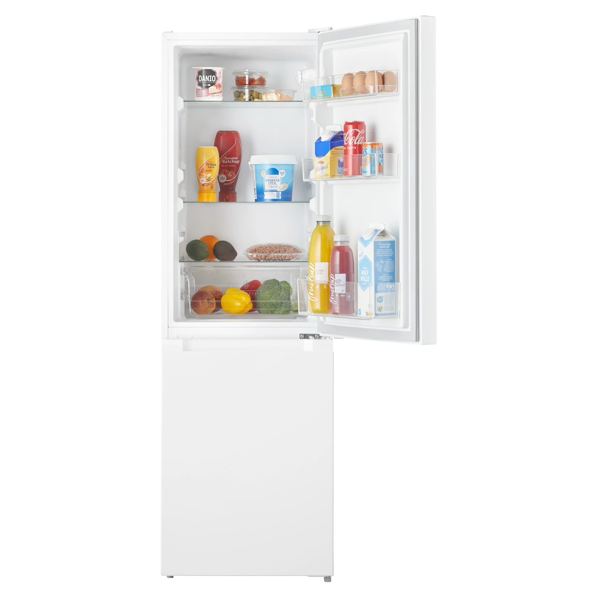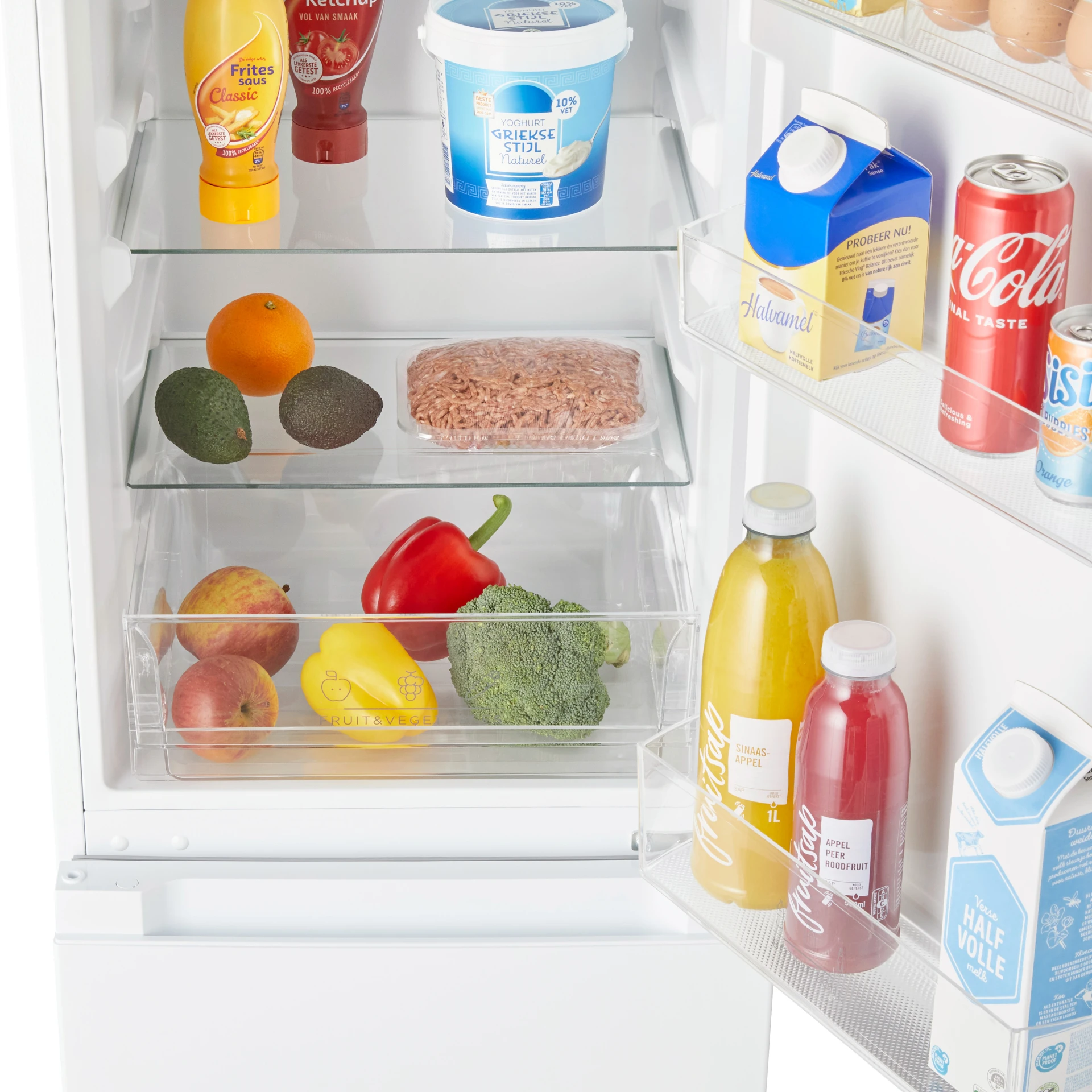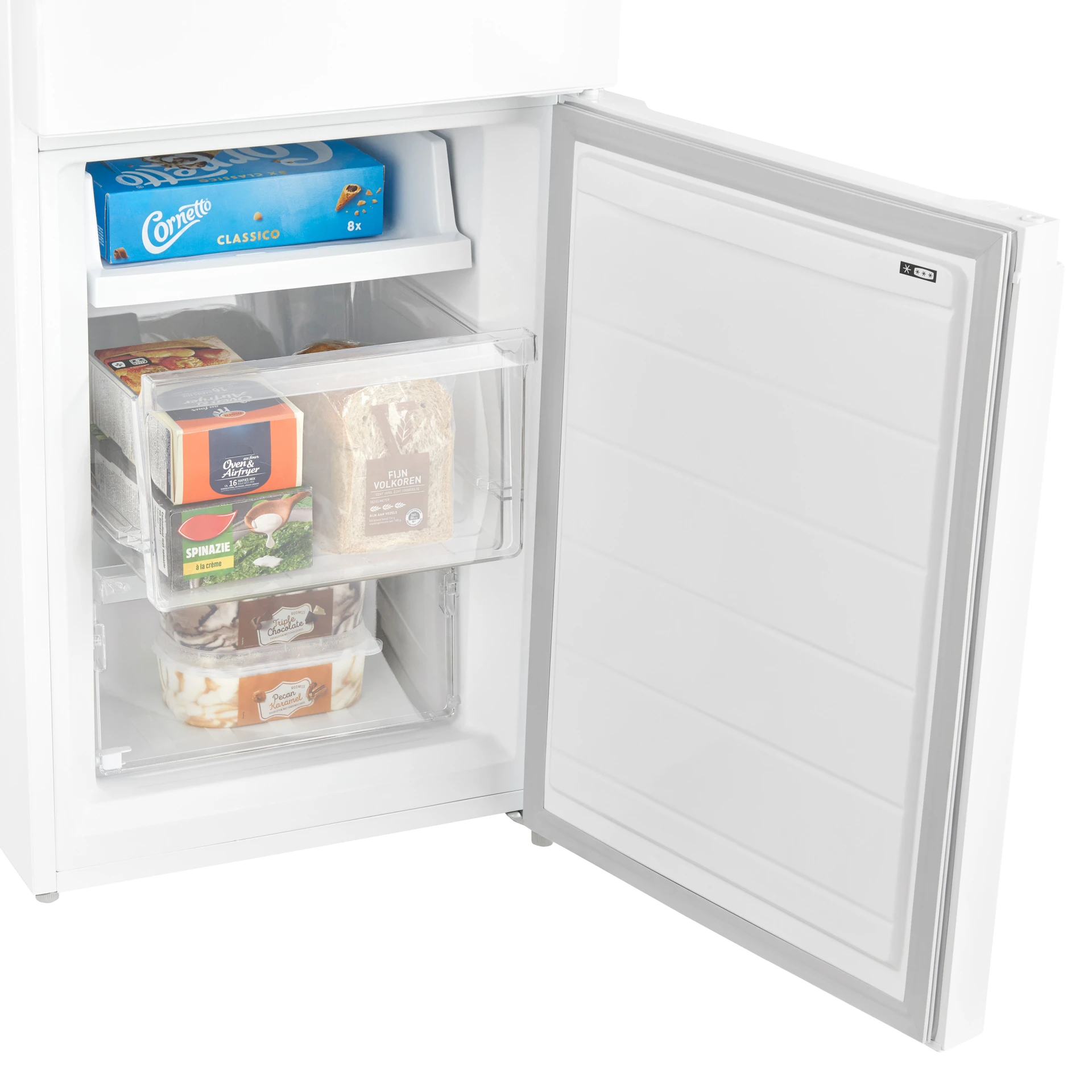 De Inventum vrijstaande koel- vriescombinatie KV1500W heeft een totale netto inhoud van 174 liter. Het is een koel- vriescombinatie met energieklasse D. Het koelgedeelte is bovenin, het vriesgedeelte onderin. Het ruime koelgedeelte met superkoelen en een flexibele indeling is voorzien van energiezuinige led-verlichting. Het 4 sterren, Low Frost vriesgedeelte met supervriezen heeft 1 transparante lade, 1 open lade, 1 vak met klep en een netto inhoud van 59 liter. Het invriesvermogen is 2,7 kg/24u. In deze koel- vriescombinatie is genoeg ruimte om al je etenswaren netjes op te bergen. Deze onderdelen zijn eenvoudig te verwijderen, zodat je ze goed kunt schoonmaken.