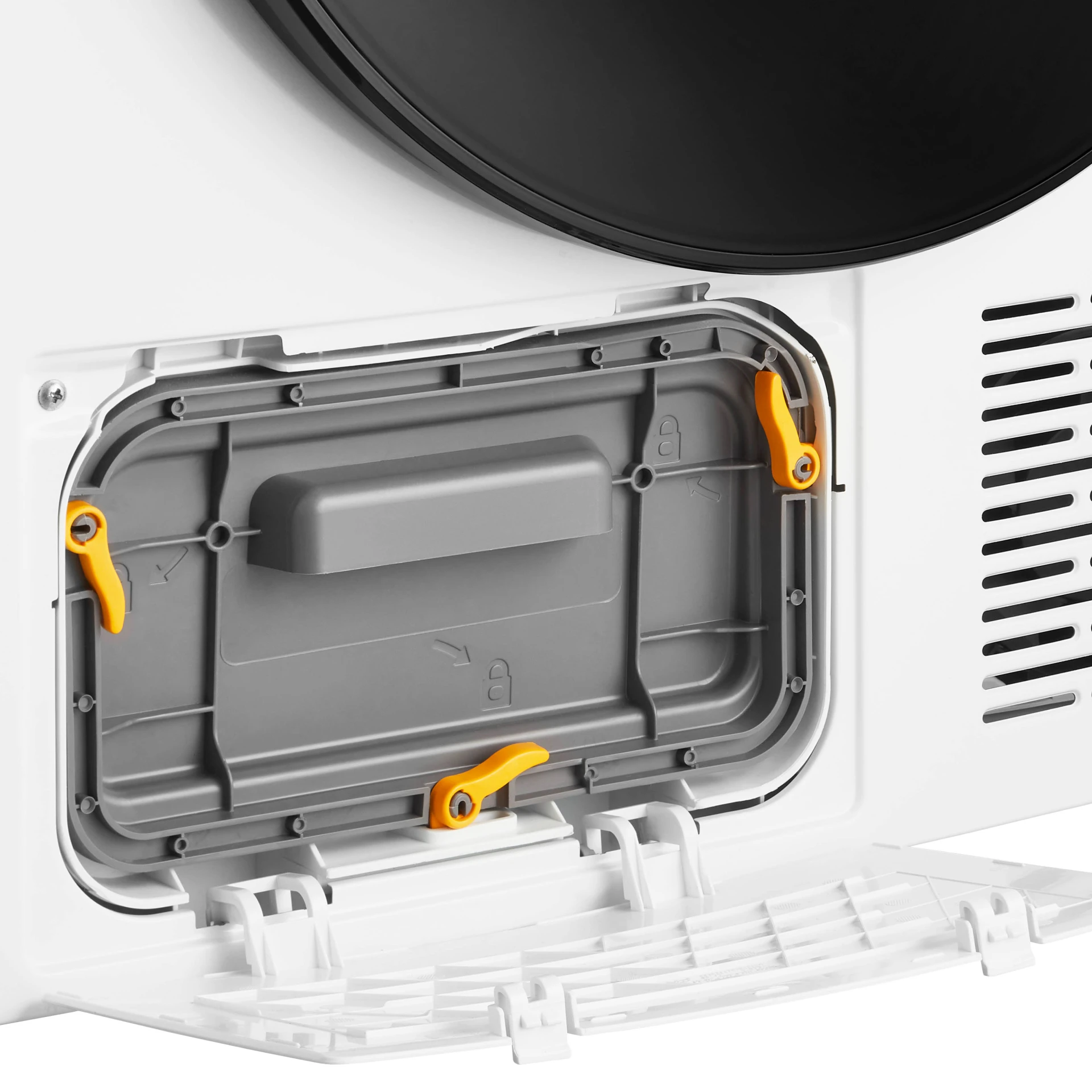Deze warmtepompdroger is voorzien van een kinderslot. Door dit in te schakelen kun je programma's, instellingen en extra functies van de wasdroger tijdens het drogen niet veranderen. Je kunt de wasdroger wel altijd uitzetten als het kinderslot aan staat.