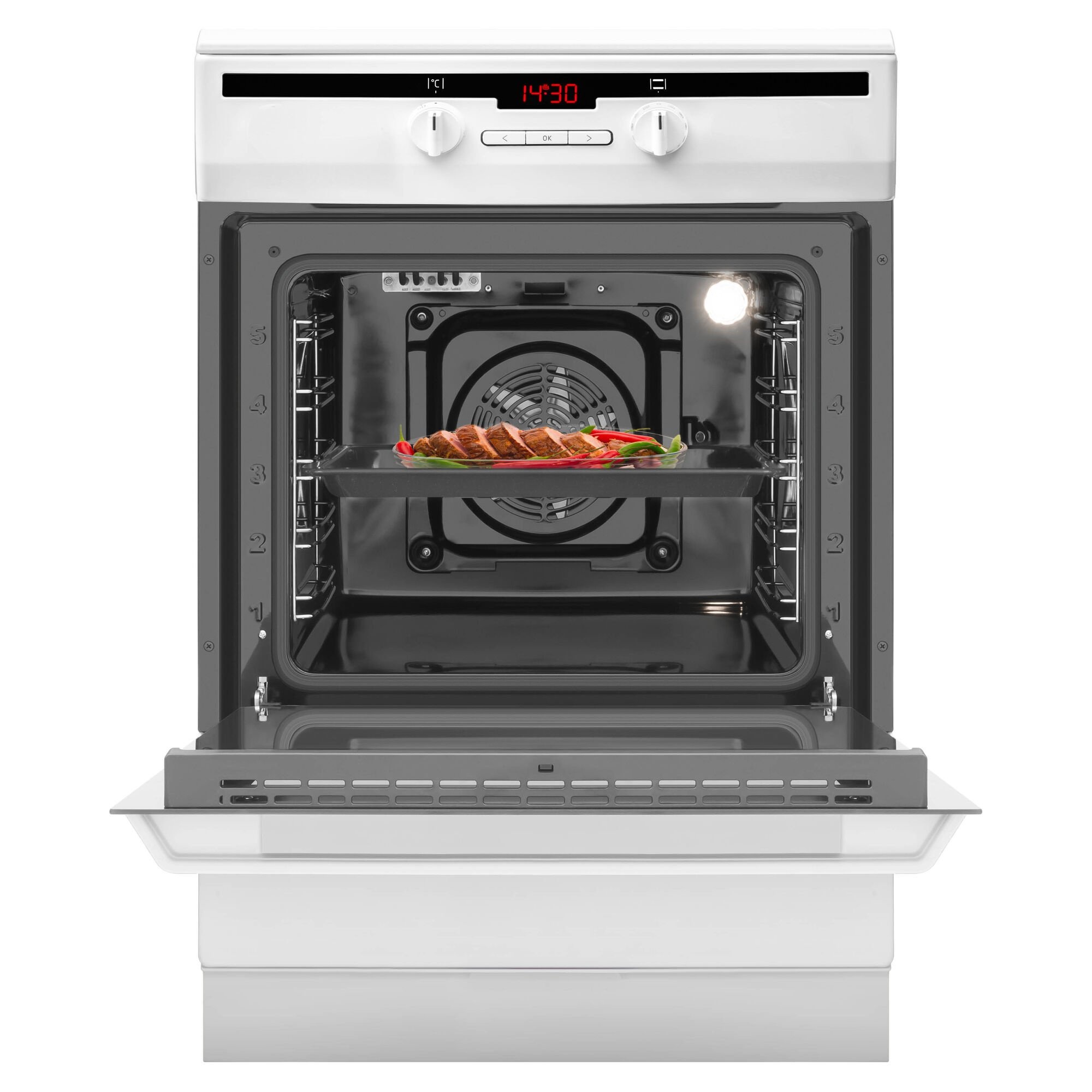 Met het vrijstaande Inventum inductiefornuis VFI6042WIT kun je koken, bakken en braden tegelijk. Door de powermanagement functie kun je het totale maximale vermogen van het kookgedeelte instellen en kun je dus kiezen hoe je het fornuis wilt aansluiten: op 2- of 3-fase. Het inductiefornuis heeft 4 kookzones en is voorzien van high-speed keramisch glas. Je bedient het apparaat met tiptoetsen. Op alle kookzones zit een boostfunctie en een timer met kookwekker. De heteluchtoven heeft een inhoud van 65 liter en 11 handige ovenprogramma's. Je kunt de temperatuur instellen van 50°C tot 250°C. De oven wordt geleverd met bakplaat en rooster. Door de 5 insteekniveaus kun je meerdere gerechten tegelijk bereiden. Schoonmaken van de oven gaat gemakkelijk door het easy clean emaille. Ook de ovendeur is eenvoudig te reinigen doordat deze helemaal van glas is, zonder lastige randen of kieren.