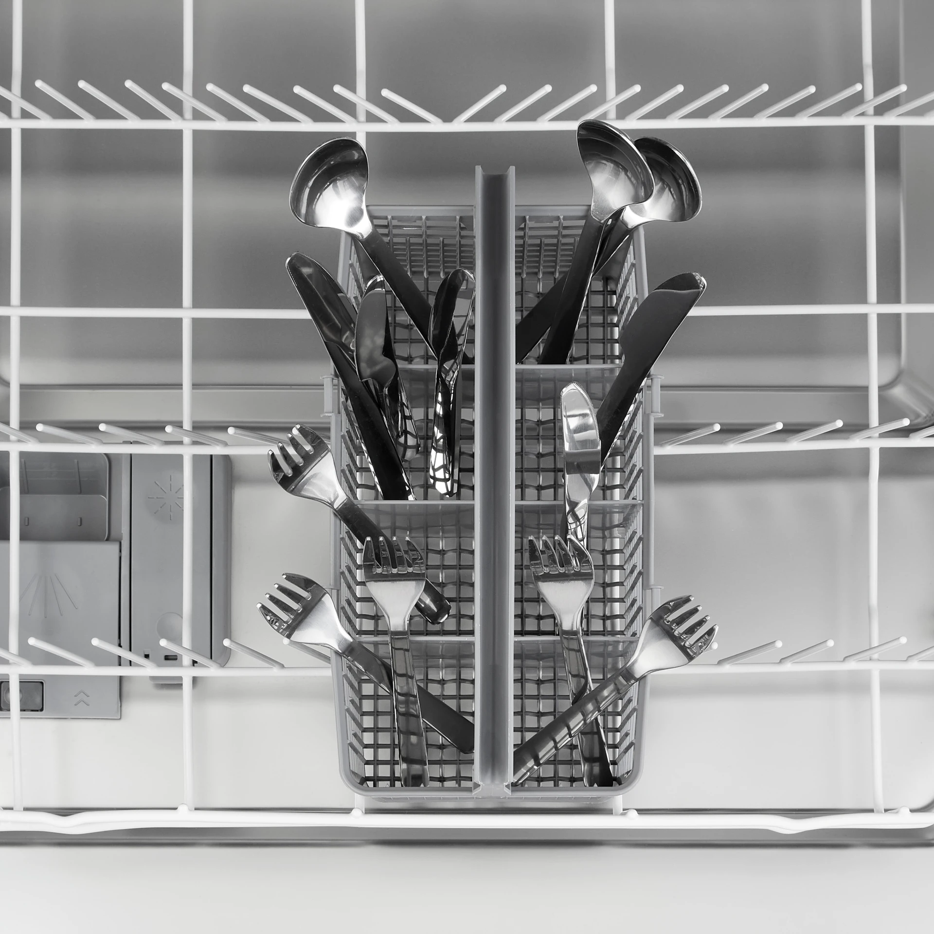 Deze vaatwasser heeft een in hoogte verstelbare bovenkorf. Hierdoor passen grote pannen met gemak in de onderkorf. De bovenkorf heeft ook handige neerklapbare rekjes. Daardoor is de vaatwasmachine heel flexibel in te delen.