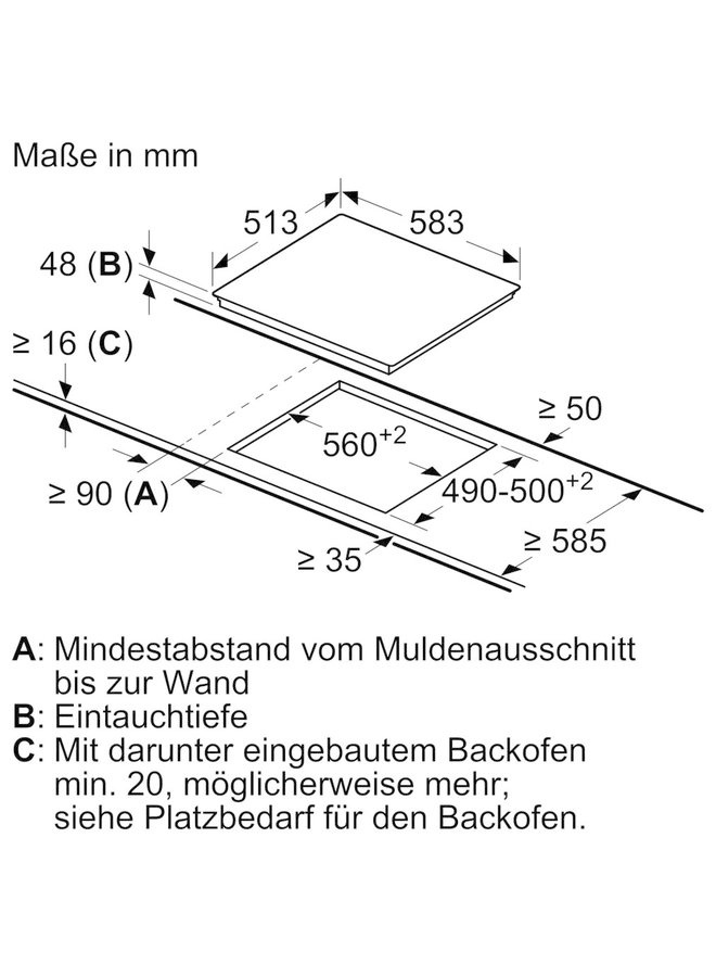 Inbouwmaten (H x B x D) 4,8 x 56,0 x 49,0 cm