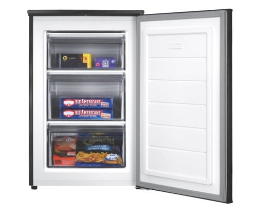 Deze vriezer heeft strak en compact design. Het is een tafelmodel met een hoogte van 85 cm. Hierdoor is hij naast het invriezen van etenswaren ideaal te gebruiken om andere keukenapparatuur zoals een magnetron of bakoven op te plaatsen.