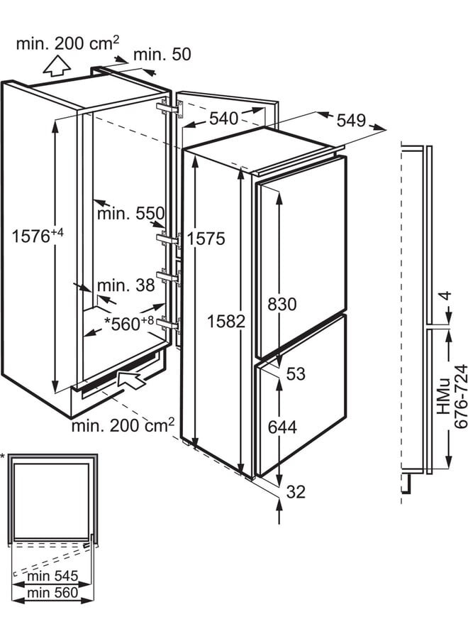 Inbouwafmetingen HxBxD (mm) 1580x560x550