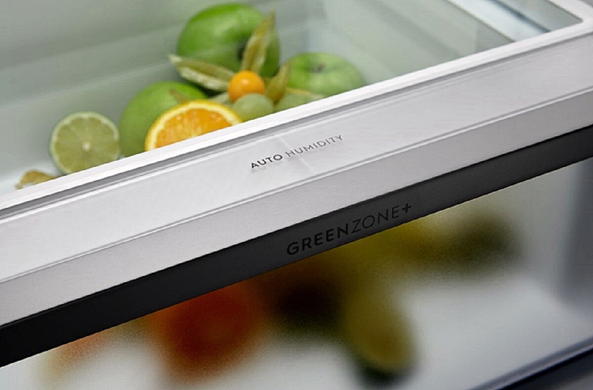 De GreenZone+ lade heeft een slimme membraan die automatisch de vochtigheid aanpast. Daardoor blijven groenten en fruit langer knapperig, vol smaak en rijk aan vitamines.