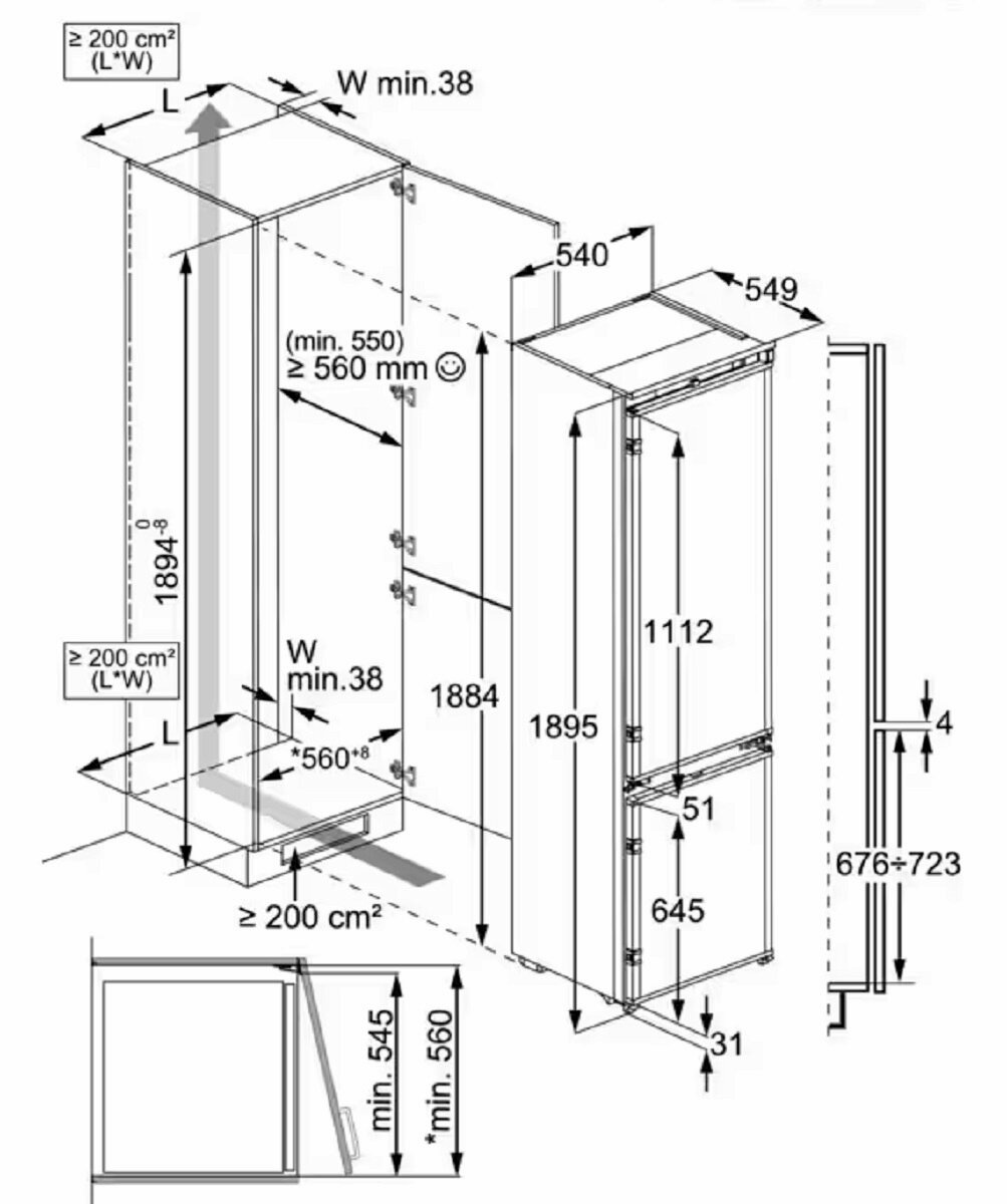 Inbouwmaten (H x B x D) 1894 x 560 x 550 mm