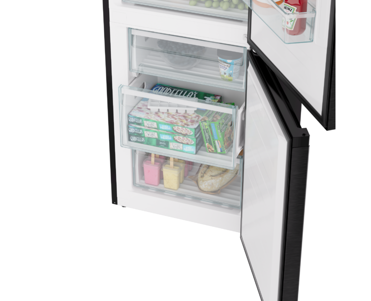 De KCV285NZWA van ETNA is een vrijstaande design koel-vriescombinatie in een stijlvolle zwarte uitvoering. Deze koel-vriescombinatie is niet alleen een blikvanger, met een ruime inhoud van 300 liter bied hij ook het ultieme gemak in de keuken. Zo is deze koel-vriescombinatie voorzien van een Fast Freeze functie waarmee eten supersnel wordt ingevroren. Dit zorgt ervoor dat producten zo snel mogelijk op de juiste temperatuur komen en hierdoor de voedingstoffen beter behouden blijven. MultiFlow 360° luchtcirculatie zorgt tevens voor een gelijkmatige koeling en temperatuur in het koelgedeelte. Zo heb je altijd het perfecte klimaat in je koelkast, voor het zo lang mogelijk vers houden van je producten. Dankzij No-Frost Plus hoef je de ruime ETNA vriezer nooit meer te ontdooien en wordt condensvorming in het koelgedeelte tegengegaan. Bovendien zijn dankzij de heldere LED verlichting alle schappen en lades goed verlicht.
