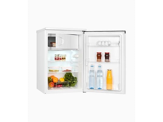 Koelkast Exquisit KS16-4-051CW is een kleine koelkast, Energielabel C, geschikt voor een extra voorraad aan producten of een eenpersoonshuishouden. Met de 2 verschillende legplateaus en 3 deurvakken, kan je de koelkast naar eigen wens indelen.