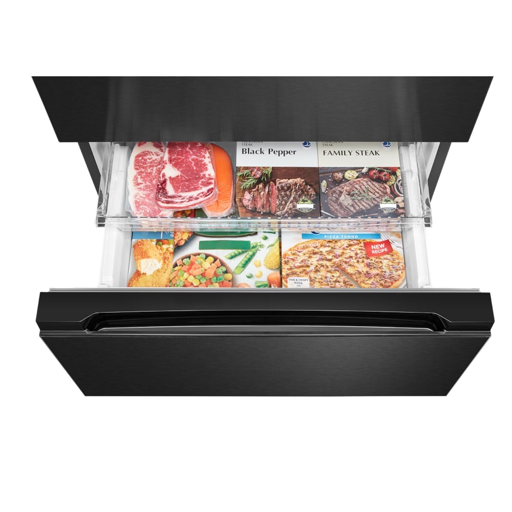In het vriesgedeelte vind je twee ruime vriesladen, perfect voor het overzichtelijk opbergen van diepvriesproducten. De temperatuur wordt weergegeven via het display in de deur, en dankzij de snelvriesfunctie worden verse producten extra snel gekoeld en ingevroren.