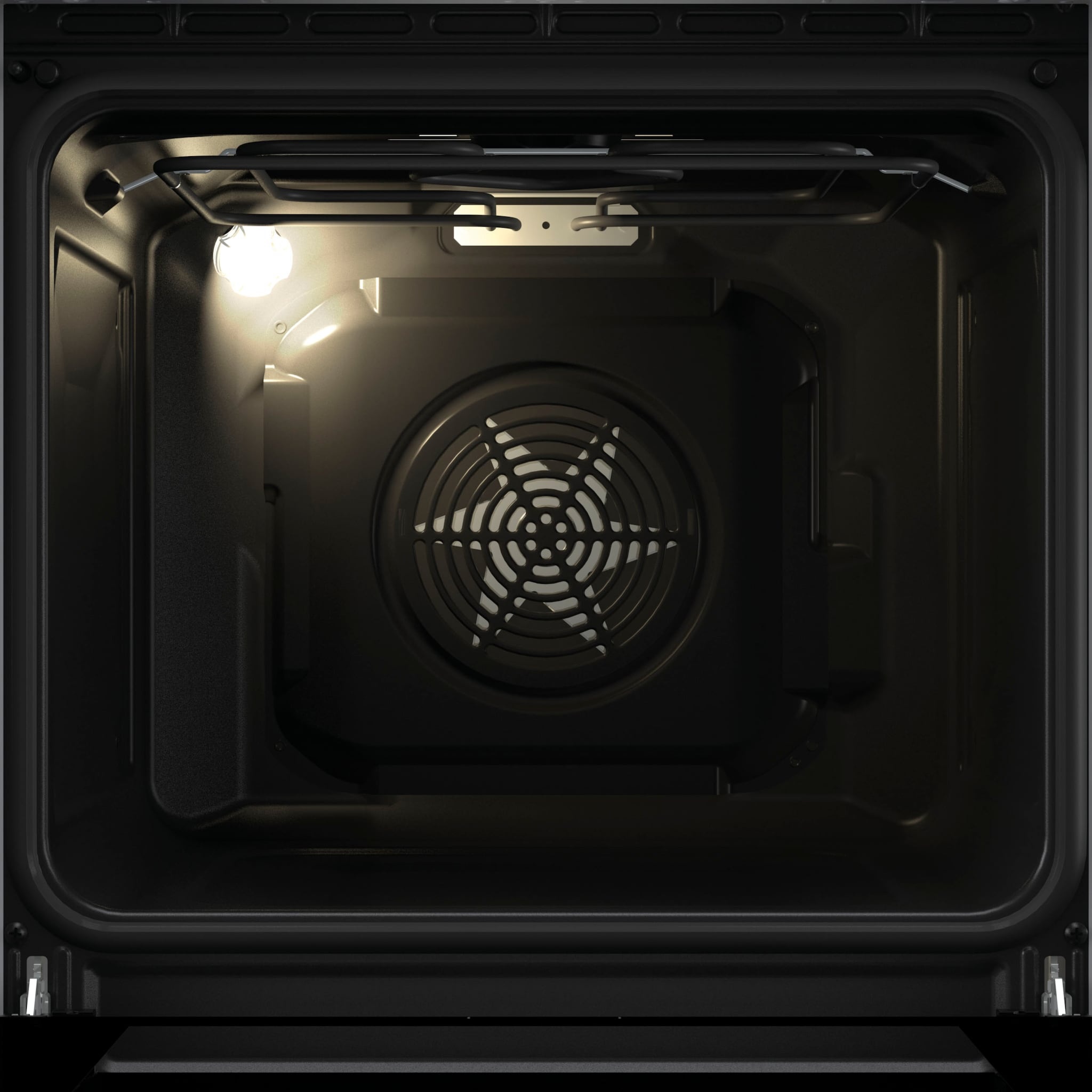 Dankzij intelligent geplaatste ventilatieopeningen in de achterwand en de unieke ovale ovenvorm kan de hete lucht in de oven gelijkmatig circuleren. De ventilator verdeelt de warme lucht gelijkmatig door de oven, waardoor het eten aan alle kanten perfect gebakken wordt.