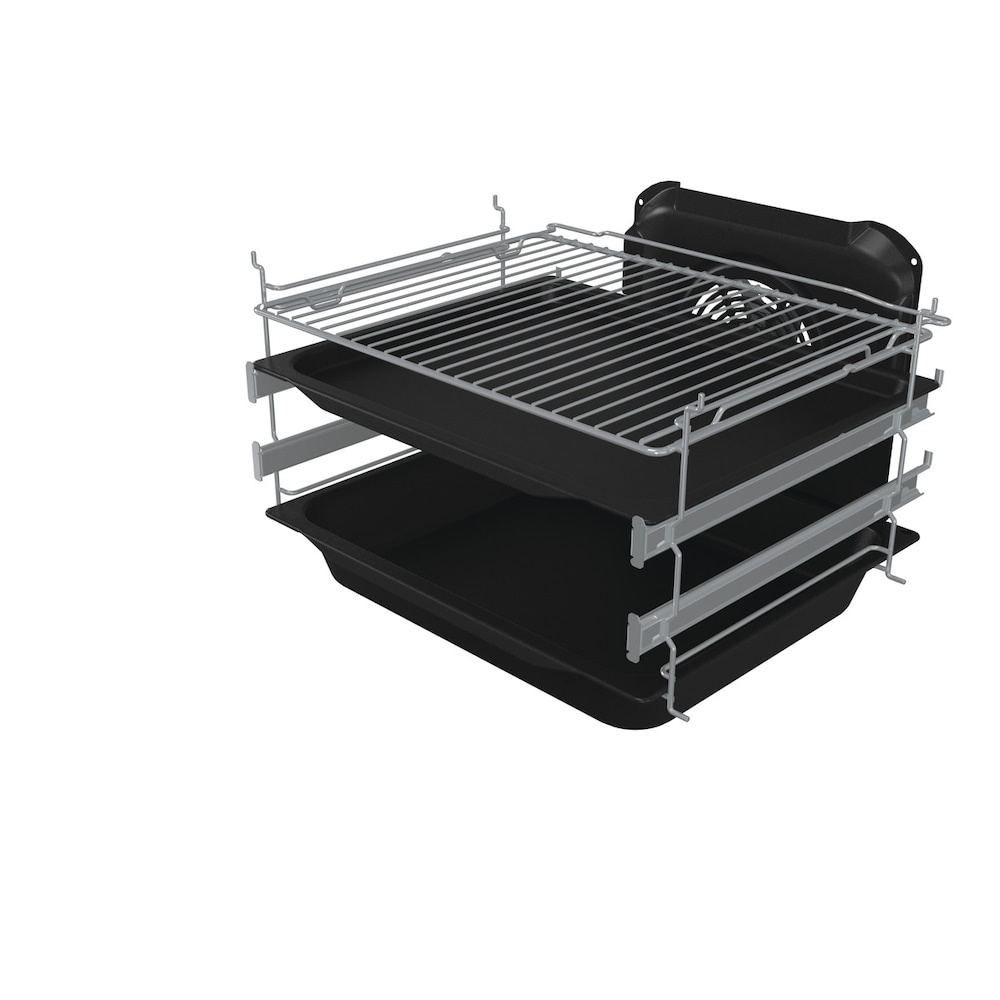 Perfecte ventilatieopeningen aan alle zijden en de unieke ovale ovenvorm zorgen ervoor dat de hete lucht gelijkmatig in de oven circuleert. De ventilator verdeelt de warme lucht gelijkmatig door de gehele oven, waardoor het voedsel aan alle kanten perfect gebakken wordt. Dankzij de dynamische luchtbeweging kunnen gerechten op meerdere niveaus tegelijk worden bereid zonder dat geuren en smaken zich vermengen.