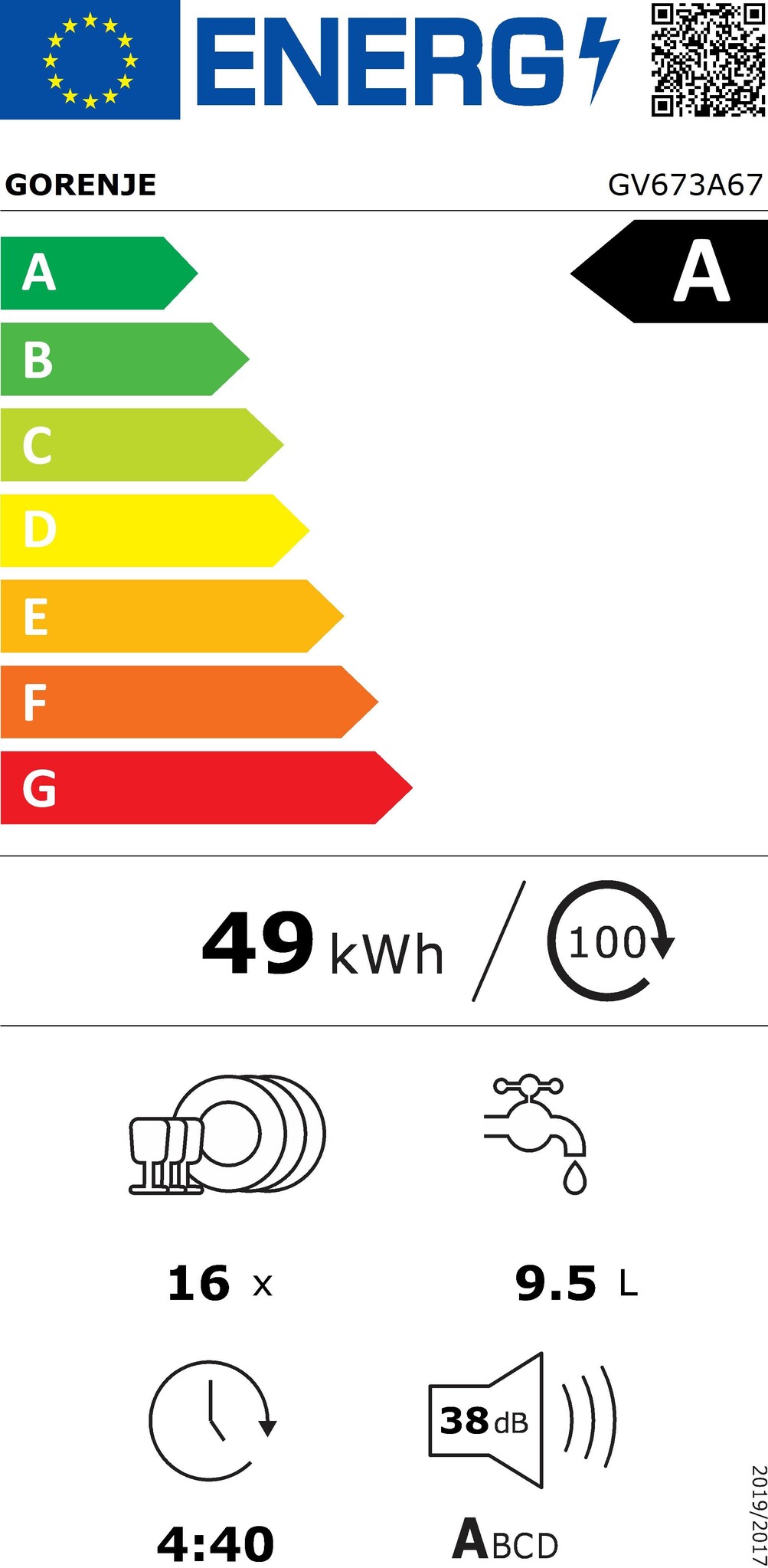 GV673A67 | Inbouw vaatwasser | Label A