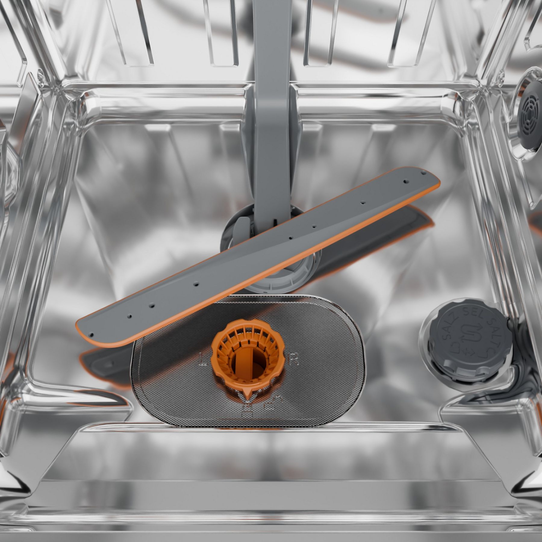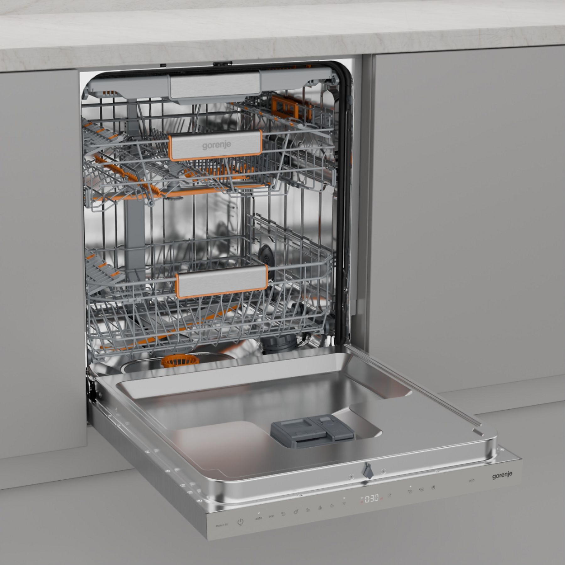 De volledig flexibele binnenruimte met drie korven biedt plaats aan maar liefst 16 couverts. Grote pannen, veel servies of een volle etentje-afwas? Geen probleem. Dit is capaciteit voor mensen die niet half willen laden.