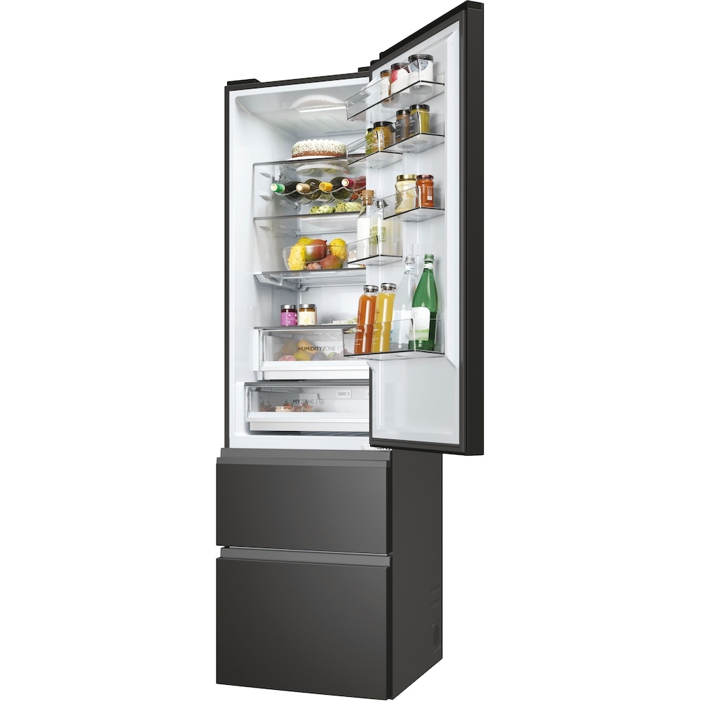 De 60 cm brede driedeurs 60 koelkasten van Haier hebben een indrukwekkend ontworpen vriesladensysteem dat niet alleen een efficiënter gebruik van de ruimte voor je diepvriesproducten mogelijk maakt, maar ook een snelle toegang geeft tot de hele vriezer, waarbij tot 60% meer energie wordt bespaard vergeleken met vergelijkbare aan de onderkant gemonteerde koel-vriescombinaties. De Fresher Techs® passen in de tussentijd voortdurend de omstandigheden aan om te garanderen dat de kwaliteit van je voedsel behouden blijft. De koelkasten uit de 3D 60 Serie 5 van Haier zorgen ervoor dat je voedsel perfect wordt bewaard, dankzij gespecialiseerde zones die de temperatuur en/of de vochtigheid beheren om de levensmiddelen langer vers te houden, en andere koel- en bewaaroplossingen.