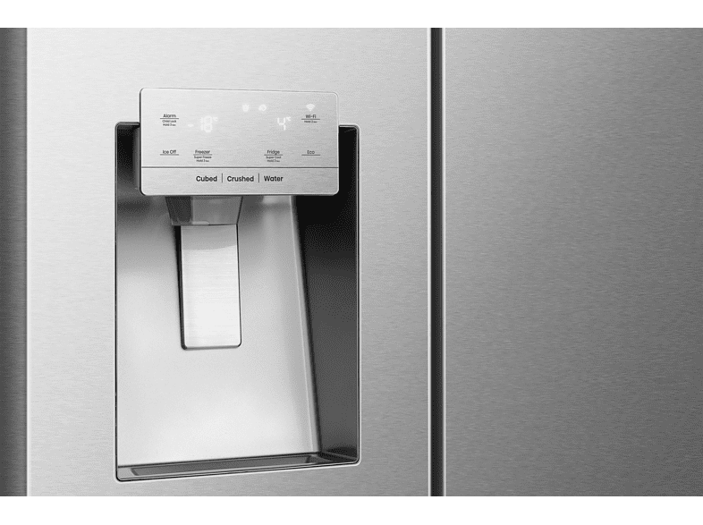 Koud water, ijsblokjes en crushed ice; de ijs- en waterdispenser is van alle markten thuis. Met één druk op de knop op het digitale display bepaal je zelf welk soort ijs eruit komt. Extra handig is dat de ruimte in de dispenser groot genoeg is om een hele karaf met koud water te vullen. De ijs- en waterdispenser werkt met een 4,5 liter waterreservoir, hierdoor zit je niet vast aan een wateraansluiting en kan je de side-by-side koel-vriescombinatie op elke gewenste plek plaatsen.