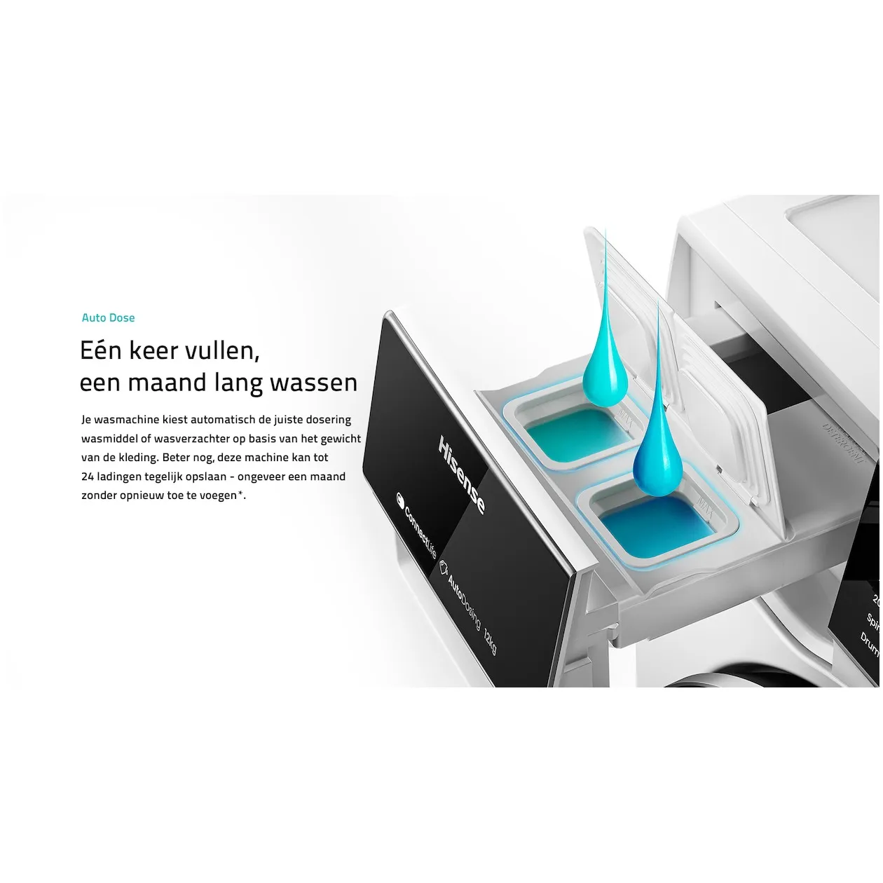 De wasmachine is van zichzelf al zuinig in gebruik, zelfs als het aankomt op je wasmiddel: dankzij AutoDose wordt automatisch de juiste hoeveelheid gebruikt. Jij vult de reservoirs en de machine doet de rest. Na één keer vullen was je er tot 24 ladingen mee, ongeveer 1 maand aan wasbeurten. Maar ook de watertoevoer wordt nauwkeurig in de gaten gehouden. Auto Wash weegt automatisch het wasgoed tijdens een cyclus en past zowel de hoeveelheid water als wasmiddel aan. Je verbruikt dus nooit meer dan nodig. Daarom heeft dit model energielabel A.