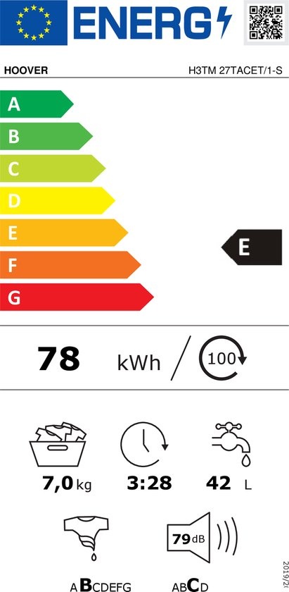 Geluidsniveau centrifugeren 79 dB (klasse C)