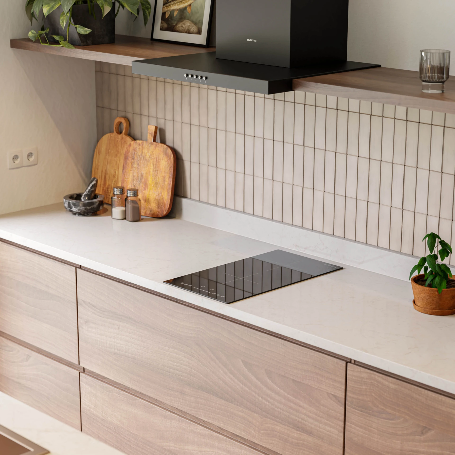 De IKI3008 inbouw inductiekookplaat heeft een randloos design. De kookplaat ligt strak op je aanrechtblad.