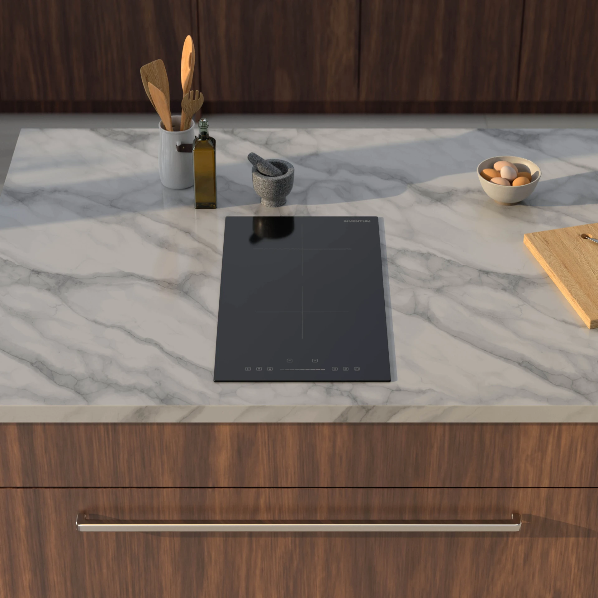 De randloze Inventum inbouw inductiekookplaat IKI3008 is voorzien van 2 kookzones, met elk 9 standen, timer en kookwekker. Beide kookzones hebben een boostfunctie voor extra snelle verhitting. Handig als je even snel water wilt koken. De kookplaat is eenvoudig te bedienen met een slider. Omdat veiligheid voorop staat, is het apparaat voorzien van restwarmte indicatie, kookduurbegrenzing, automatische panherkenning en kinderslot. En niet geheel onbelangrijk: na het koken maak je de glasplaat heel gemakkelijk schoon met een vochtige doek.
