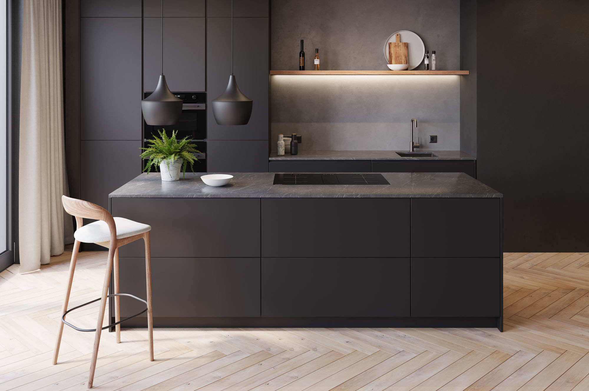 Het apparaat beschikt in totaal over 3 stekkers, 2 stekkers voor de inductiezones en 1 stekker voor de afzuigunit. Deze stekkers worden aangesloten op 3 separate wandcontactdozen. Deze dienen verdeeld te zijn over 2 aparte groepen in de meterkast. De kookplaat is op diverse manieren te monteren, afhankelijk van de diepte van het aanrechtblad en de wensen met betrekking tot de lades eronder. De kookplaat is zowel opbouw als vlakinbouw te plaatsen.