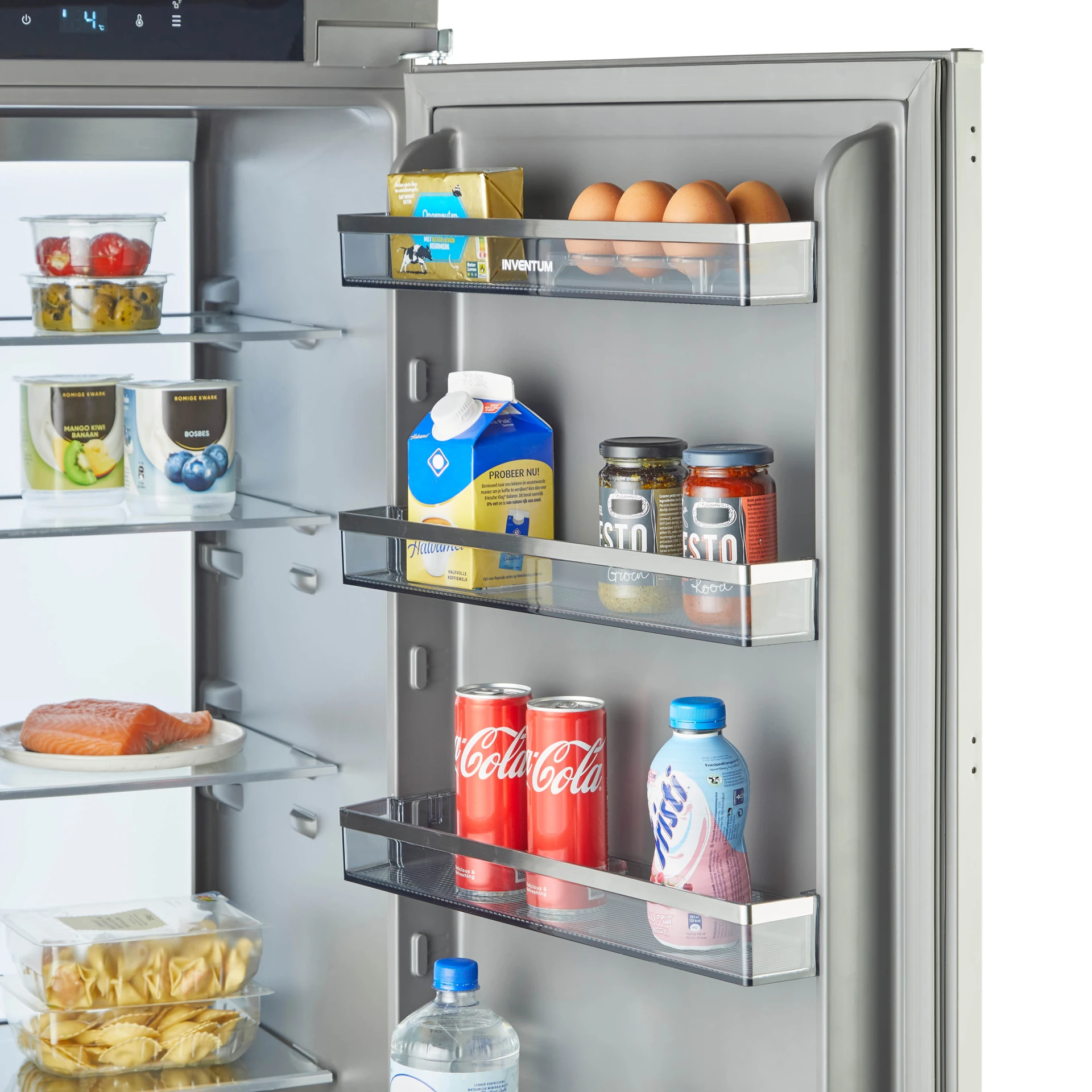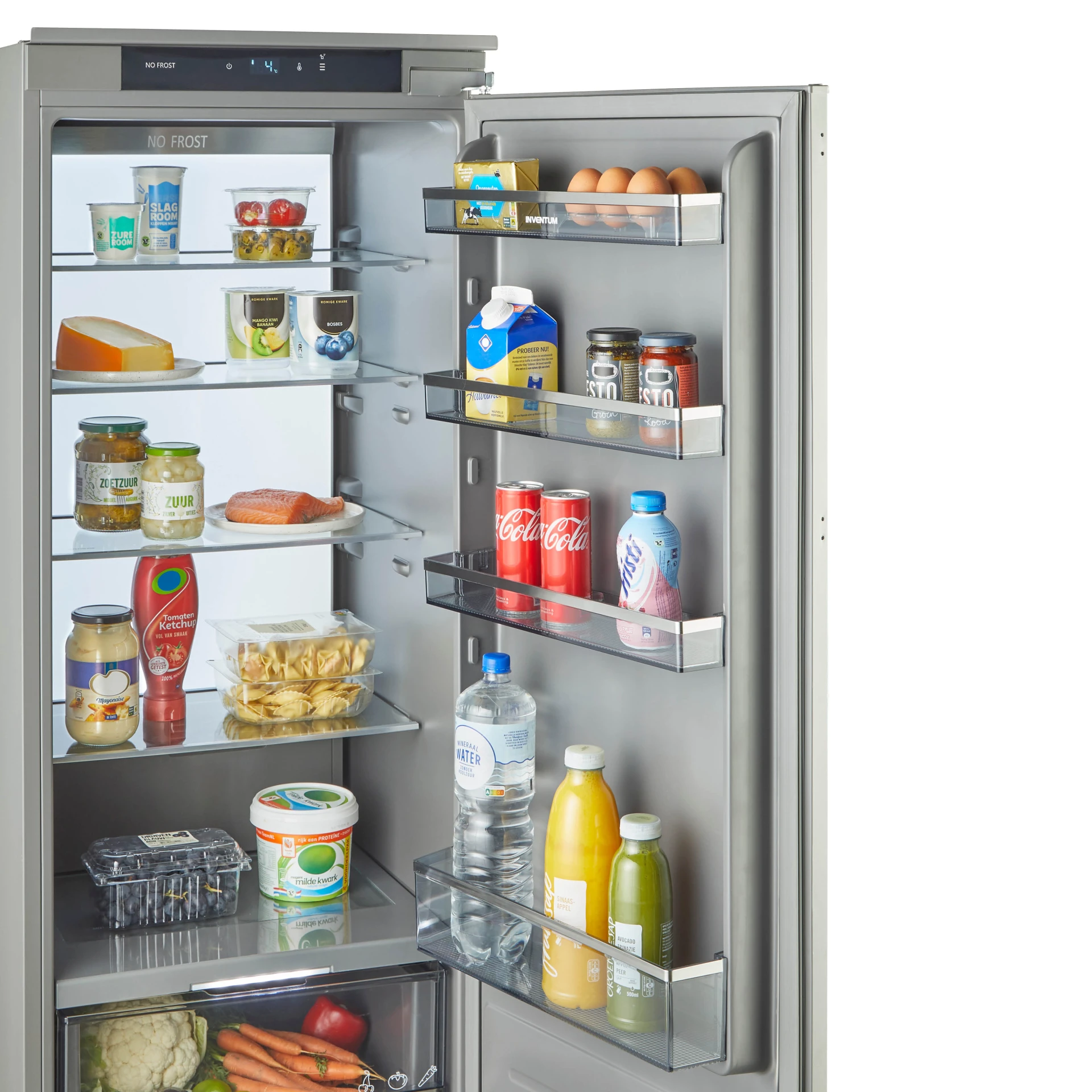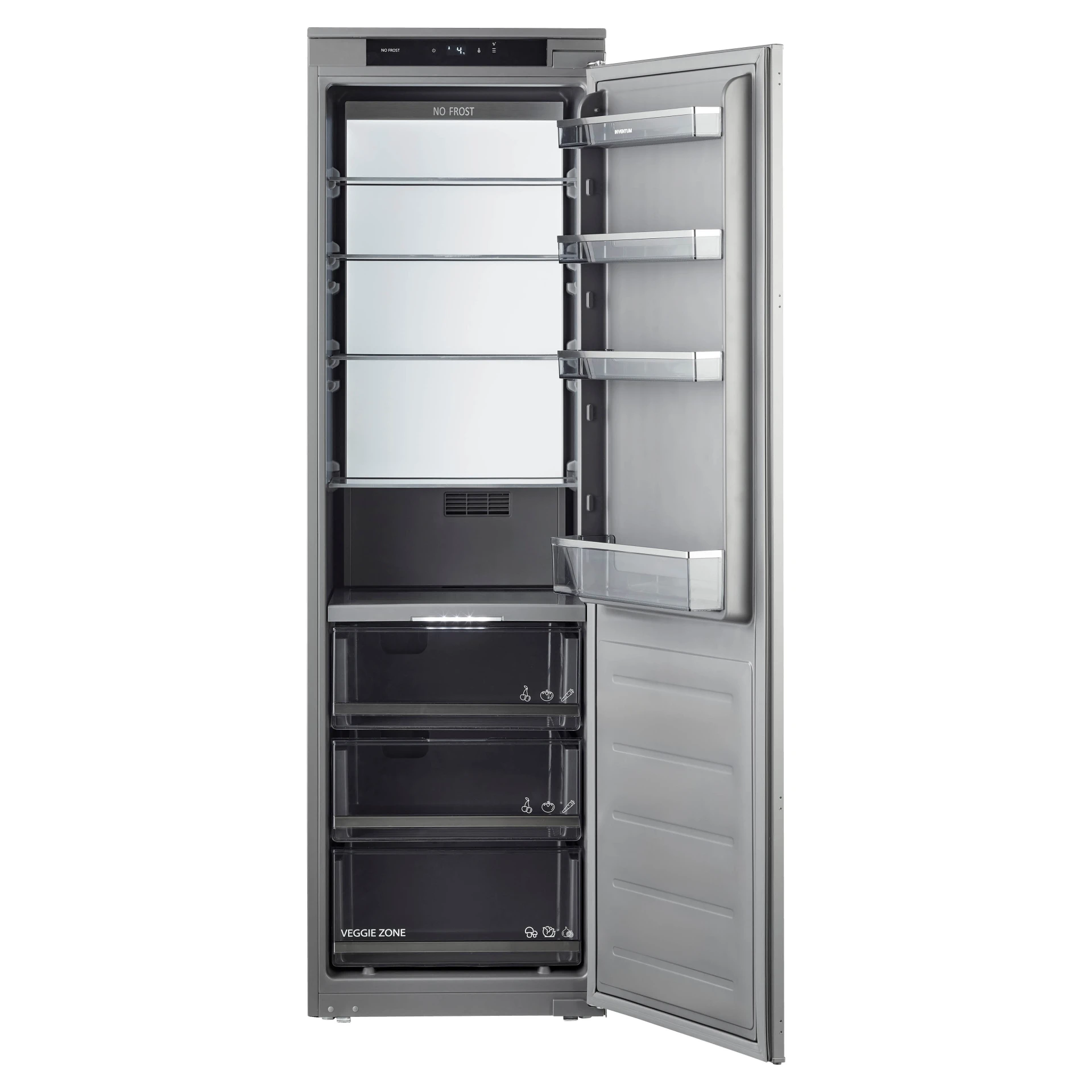 De Inventum inbouw koeler IKK1786GS is geschikt voor een standaard nismaat van 178 cm en heeft een netto inhoud van 280 liter. Het is een koelkast met energieklasse D. Dit apparaat heeft een Veggie zone met apart instelbare temperatuur voor de lades. Ideaal voor het lang vers houden van groente en fruit. Om grotere hoeveelheden voedsel snel af te koelen gebruik je de handige superkoelenstand. Door de geïntegreerde Ambient light verlichting in de achterwand zijn alle plateaus gelijkmatig verlicht. Verder is de koeler voorzien van 4 draagplateaus, 3 transparante lades en 4 deurvakken waarvan 1 flessenvak. Deze onderdelen zijn eenvoudig te verwijderen, zodat je ze gemakkelijk kunt schoonmaken.