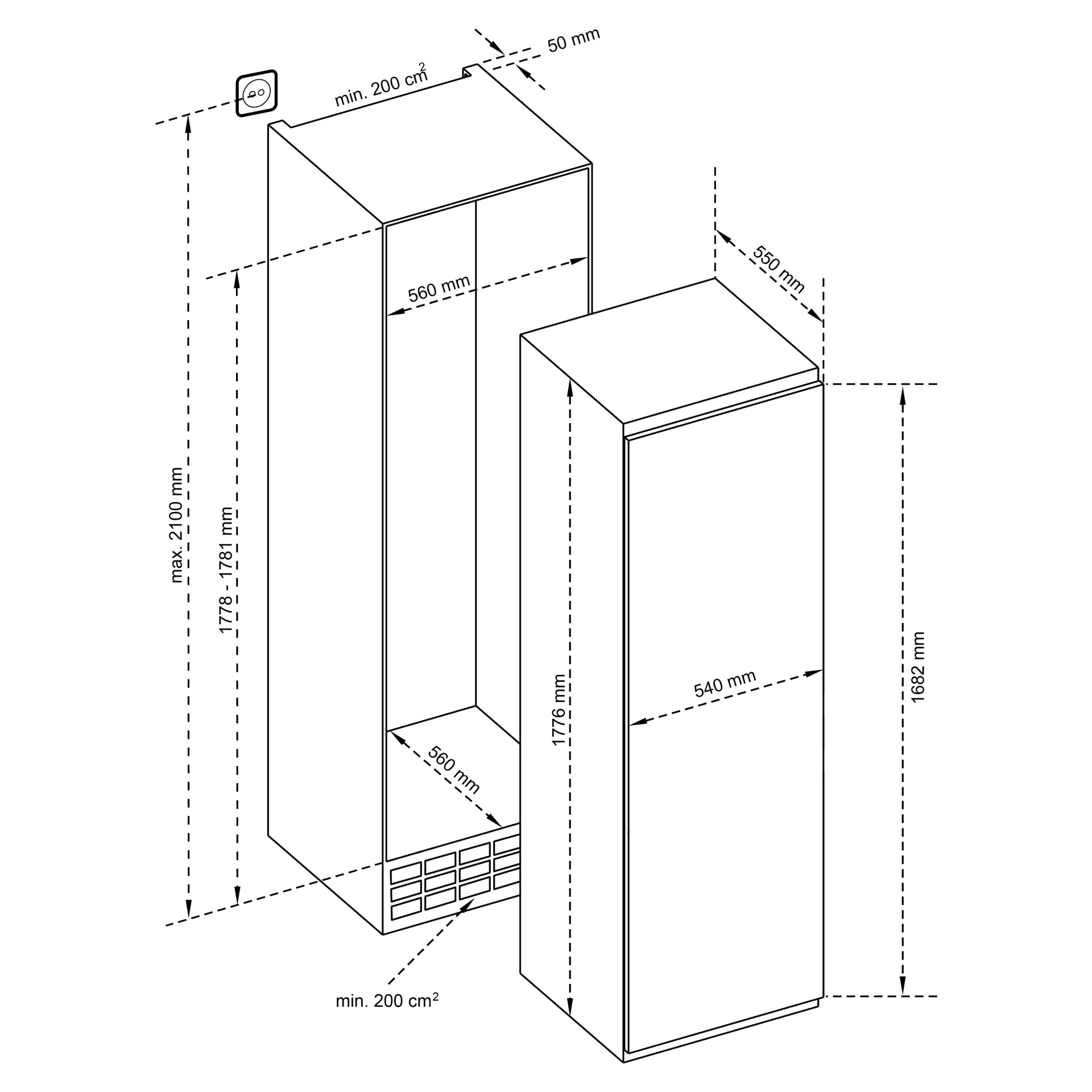 Afmeting (hxbxd) 1776 x 540 x 550 mm
