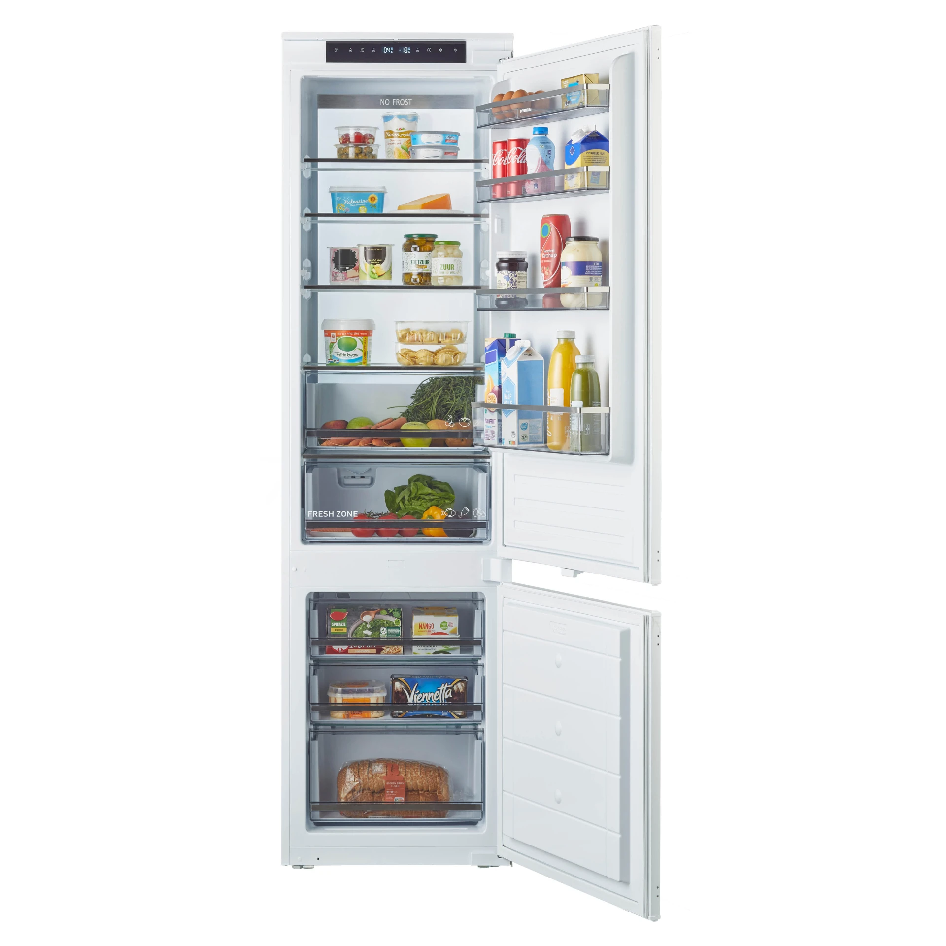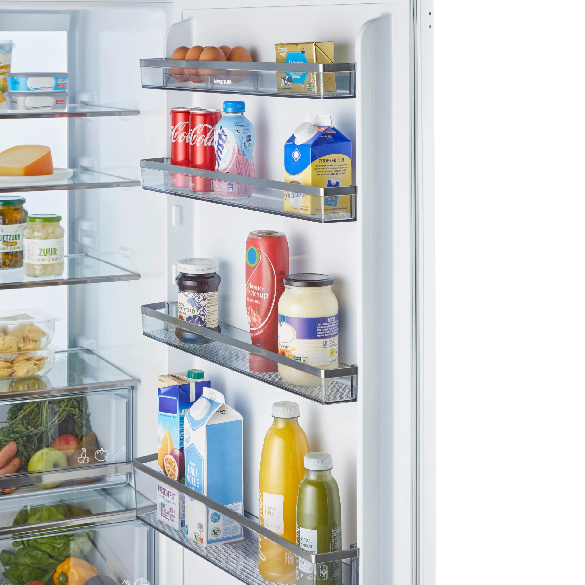 De Inventum inbouw koel-vriescombinatie IKV1945S met een inhoud van 267 liter en energieklasse D, is geschikt voor een nis van 194 cm. Het ruime koelgedeelte van 200 liter heeft een luxe ambient light achterwand. In de handige Fresh zone groentelade en door superkoelen kun je al je etenswaren extra lang bewaren. Het vriesgedeelte met supervriezen heeft 3 transparante lades en een inhoud van 67 liter. In deze No Frost koelkast is genoeg ruimte om al je etenswaren netjes op te bergen. De 4 draagplateaus, 4 deurvakken en 5 lades zijn eenvoudig te verwijderen, zodat je ze gemakkelijk kunt schoonmaken.
