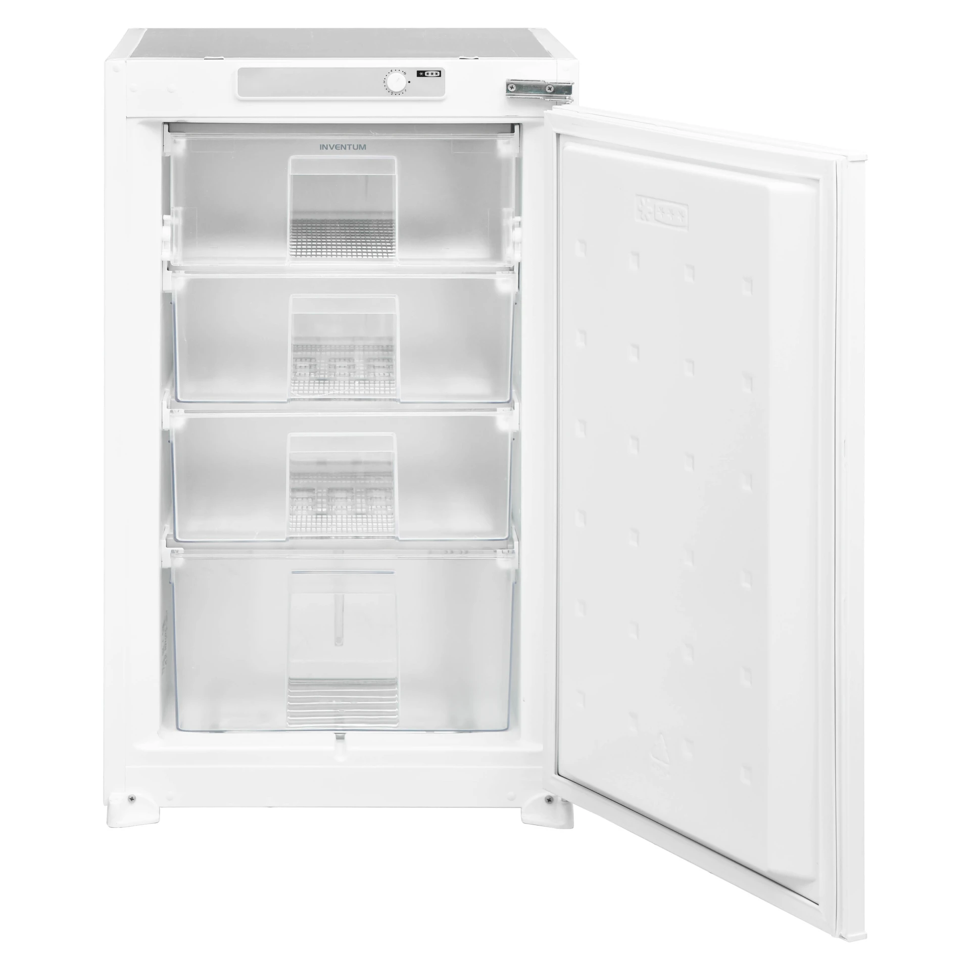 De Inventum inbouw vriezer IVR0882S is geschikt voor een standaard nismaat van 88 cm en heeft een netto inhoud van 94 liter. Het is een vriezer met energieklasse D. De 4 sterren vriezer heeft een invriesvermogen van 6 kg/24u. De vriezer is voorzien van 3 transparante lades en 1 vriesvak met klep, waar je al je etenswaren netjes in kunt opbergen.