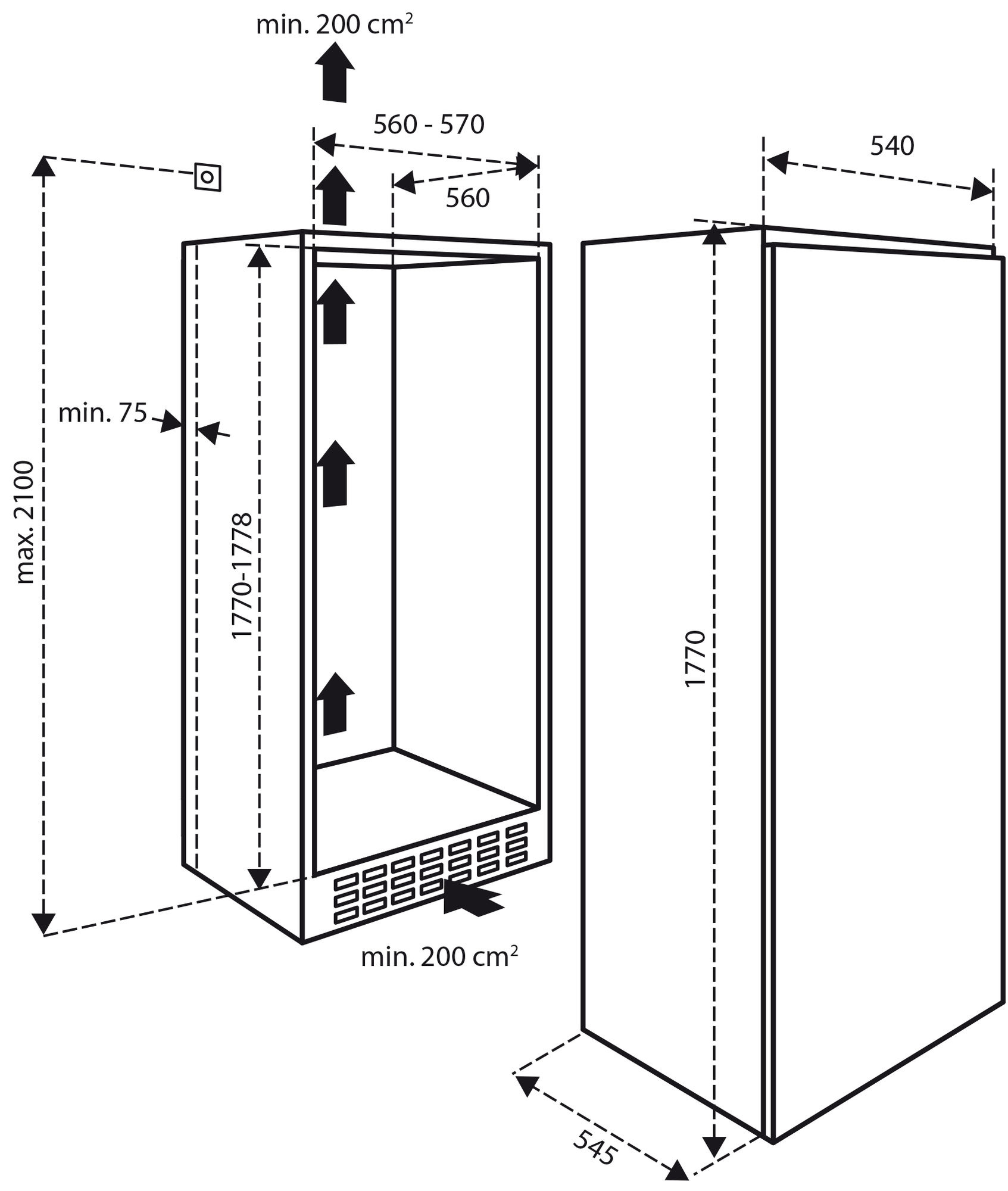 Afmeting (hxbxd) 1770 x 540 x 545 mm