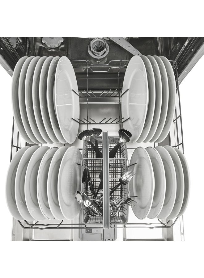 De Inventum inbouw vaatwasser IVW6008AXL is geschikt voor 13 couverts, heeft een verstelbare bovenkorf en is extra groot. Deze zuinige vaatwasser met energie-efficiëntieklasse E (voorheen A++) verbruikt per wasbeurt 12 liter water. Je hebt de keuze uit zes programma’s, waaronder een ECO stand en een intensief stand voor zeer vuile vaat. Met de uitgestelde start kun je de start van het programma 3, 6, of 9 uur uitstellen. Het geluidsniveau is slechts 47 dB. Dus je kunt hem gerust in een open keuken plaatsen. Omdat veiligheid voorop staat, heeft deze vaatwasser een 4-punts bevestiging zodat hij goed stabiel staat en daarnaast een roestvrijstalen kuip en een Aquastop. Wateroverlast is daarmee voorgoed verleden tijd!