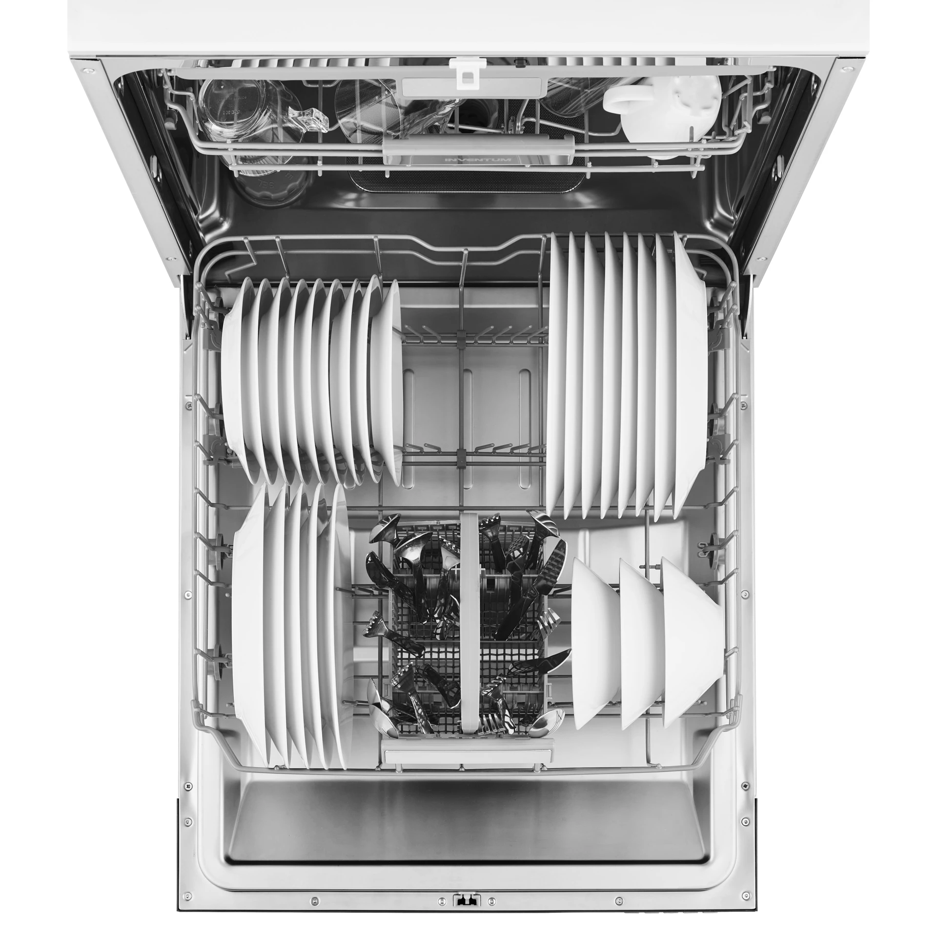 De Inventum inbouw vaatwasser IVW6025A is geschikt voor 14 couverts, heeft een besteklade en een in hoogte verstelbare bovenkorf. Deze zuinige vaatwasmachine met energieklasse C verbruikt per wasbeurt slechts 9,8 liter water. Je hebt de keuze uit 8 programma's, waaronder een eco, een extra stil en een intensief programma voor erg vuile vaat. Heb je een keer weinig vaat? Kies dan voor de optie halve belading. Het gekozen programma wordt dan sneller en minder intensief gedraaid, waardoor je tijd, energie en water bespaart. Voor nog drogere vaat kun je instellen dat de deur van de vaatwasser automatisch open gaat aan het einde van een programma. Daarnaast is het met de uitgestelde start mogelijk om het gekozen programma tot 24 uur later te laten starten. Omdat veiligheid voorop staat heeft deze vaatwasmachine een overloopbeveiliging en een aquastop.