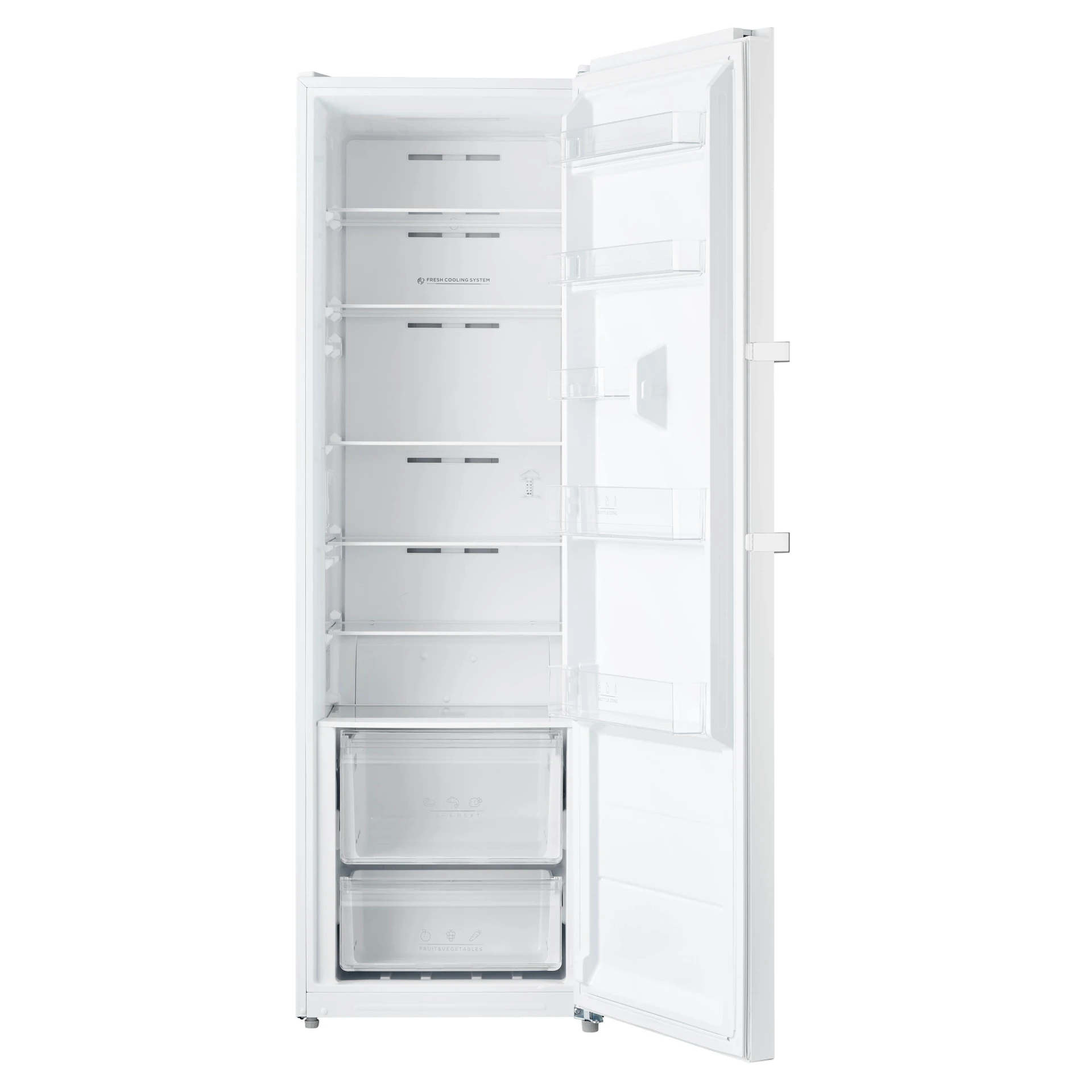 De zuinige vrijstaande koeler KK1850W van Inventum heeft energieklasse C en een geluidsniveau van 38 dB. Het is een hoog model met een inhoud van 362 liter. Het apparaat heeft superkoelen, 5 glazen draagplateaus, 2 groentelades, 5 deurvakken en led-verlichting. In de deur is de digitale regelbare thermostaat verwerkt. Daardoor kun je altijd zien wat de temperatuur in de koeler is en het makkelijk aanpassen. Het apparaat is ook uitgerust met een handig alarm dat je waarschuwt als je de deur open laat staan. De draairichting van de deur kan worden aangepast.