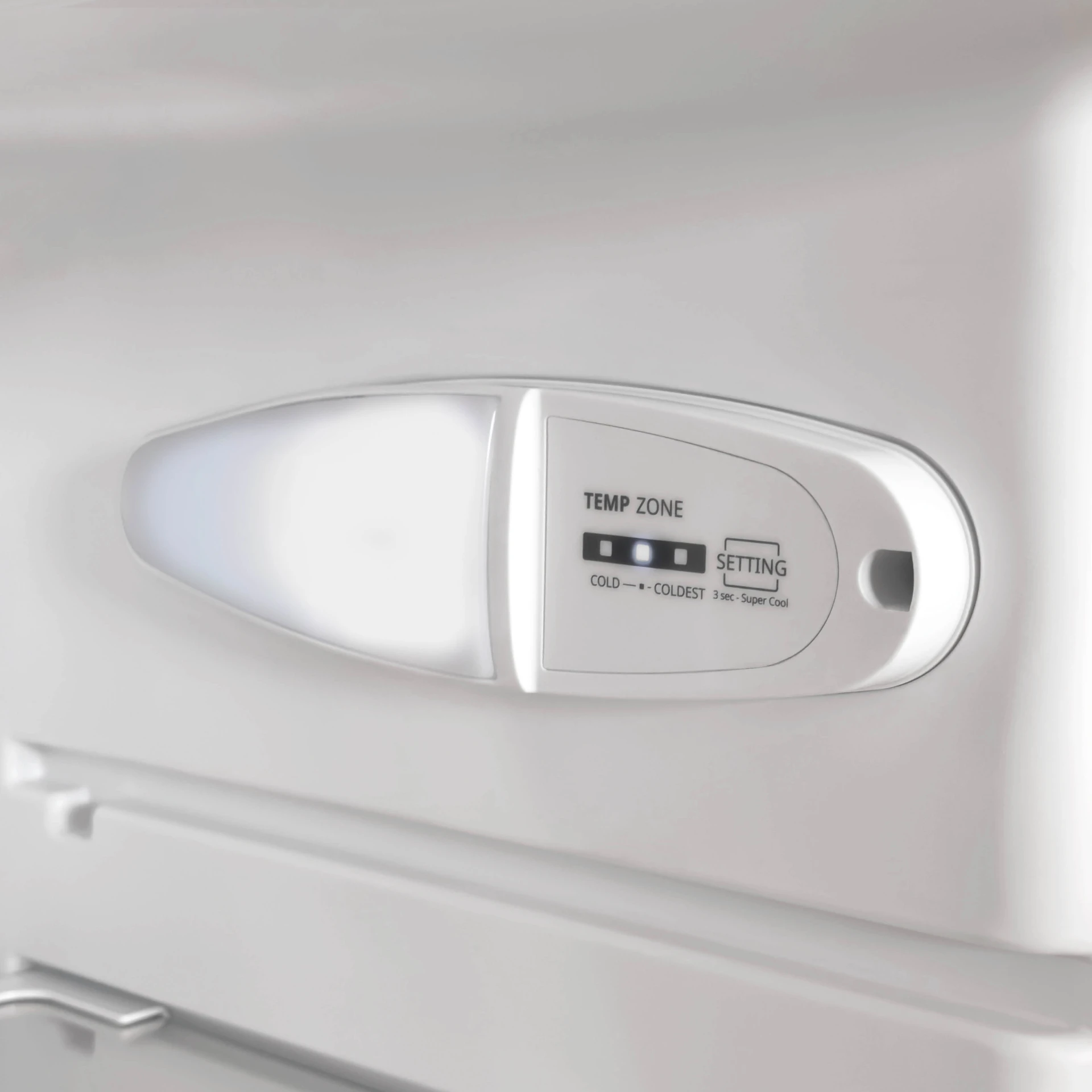 De superkoelenfunctie gebruik je om grotere hoeveelheden voedsel snel op de juiste temperatuur te brengen. Zo voorkom je dat producten die al in het apparaat lagen warmer worden en daardoor kun je alle etenswaren langer bewaren.