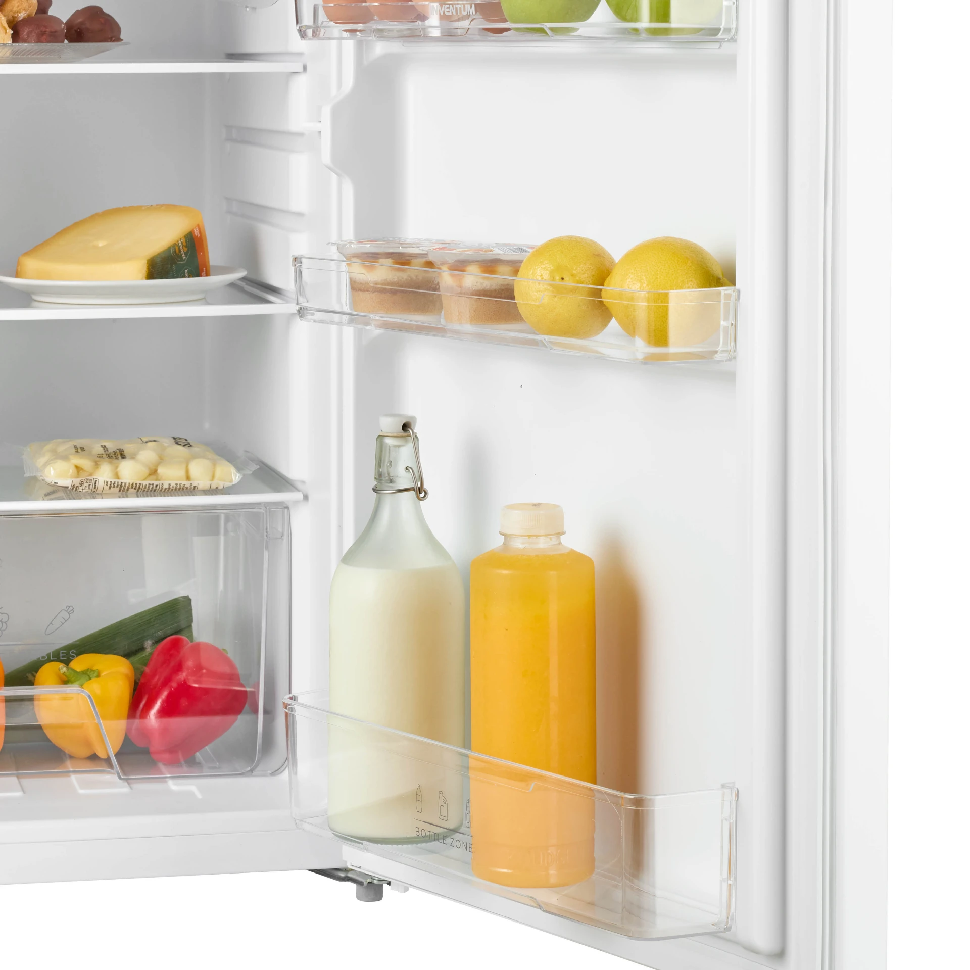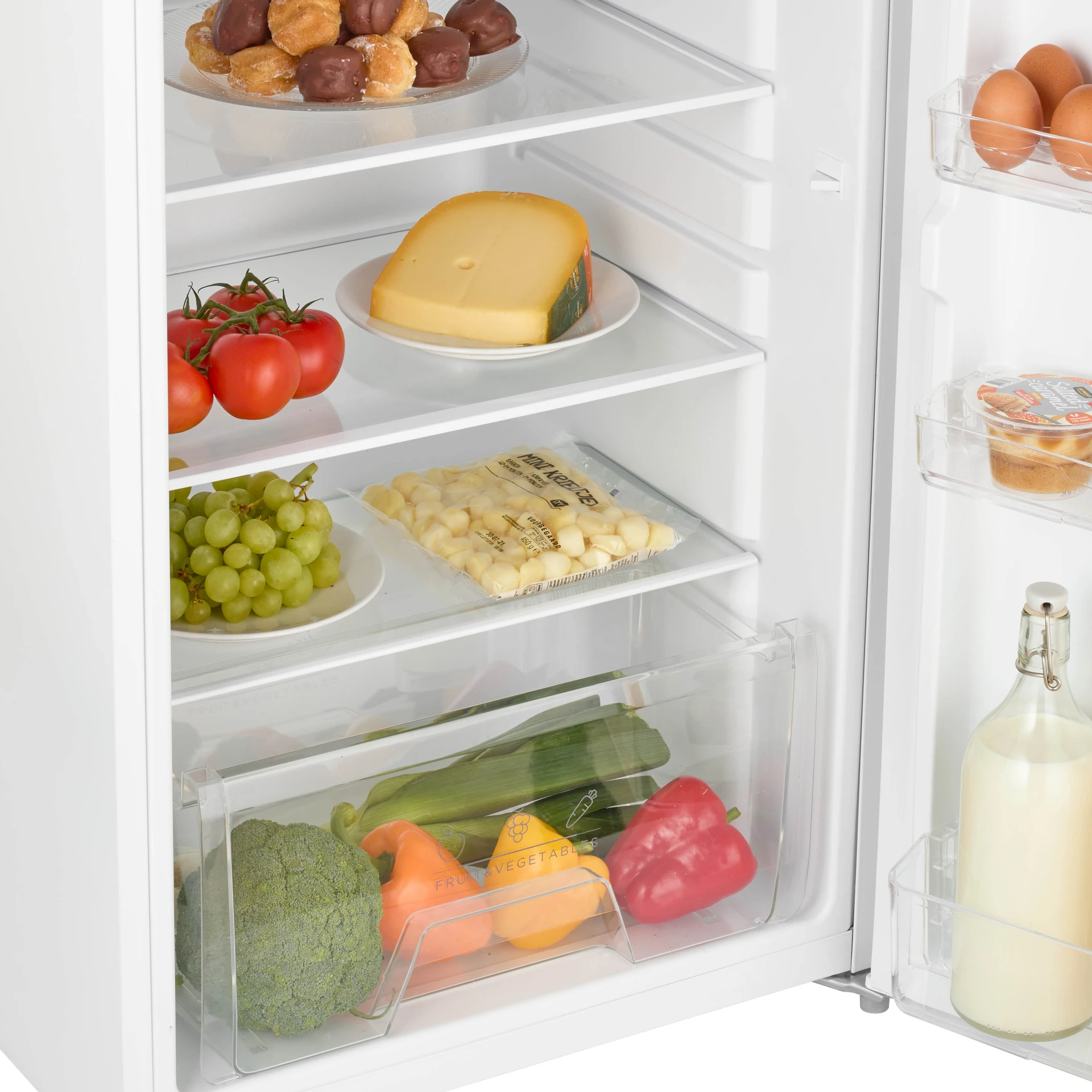 De Inventum vrijstaande koeler KK550 heeft een netto inhoud van 131 liter met energieklasse D. Dit tafelmodel heeft 3 draagplateaus en onderin 1 transparante groentelade. Met 2 deurvakken, 1 flesvak en 1 eierrekje berg je al je etenswaren netjes op. Deze onderdelen zijn eenvoudig te verwijderen, zodat je ze goed kunt schoonmaken.