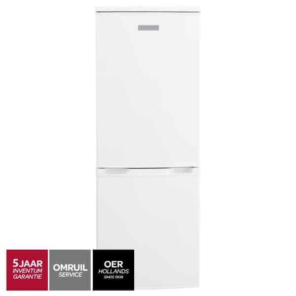 De Inventum vrijstaande koelkast KV1380 met vriesgedeelte heeft een totale netto inhoud van 160 liter. Het is een zuinige koelkast met energieklasse A+. Het 4 sterren vriesgedeelte met een netto inhoud van 45 liter, heeft een invriesvermogen van 2,5 kg/24u. De koelkast heeft drie draagplateaus en onderin een transparante groentelade. Met twee deurvakken, een flessenvak en een eierrekje berg je al je etenswaren netjes op. Deze onderdelen zijn eenvoudig te verwijderen, zodat je deze goed kunt schoonmaken.