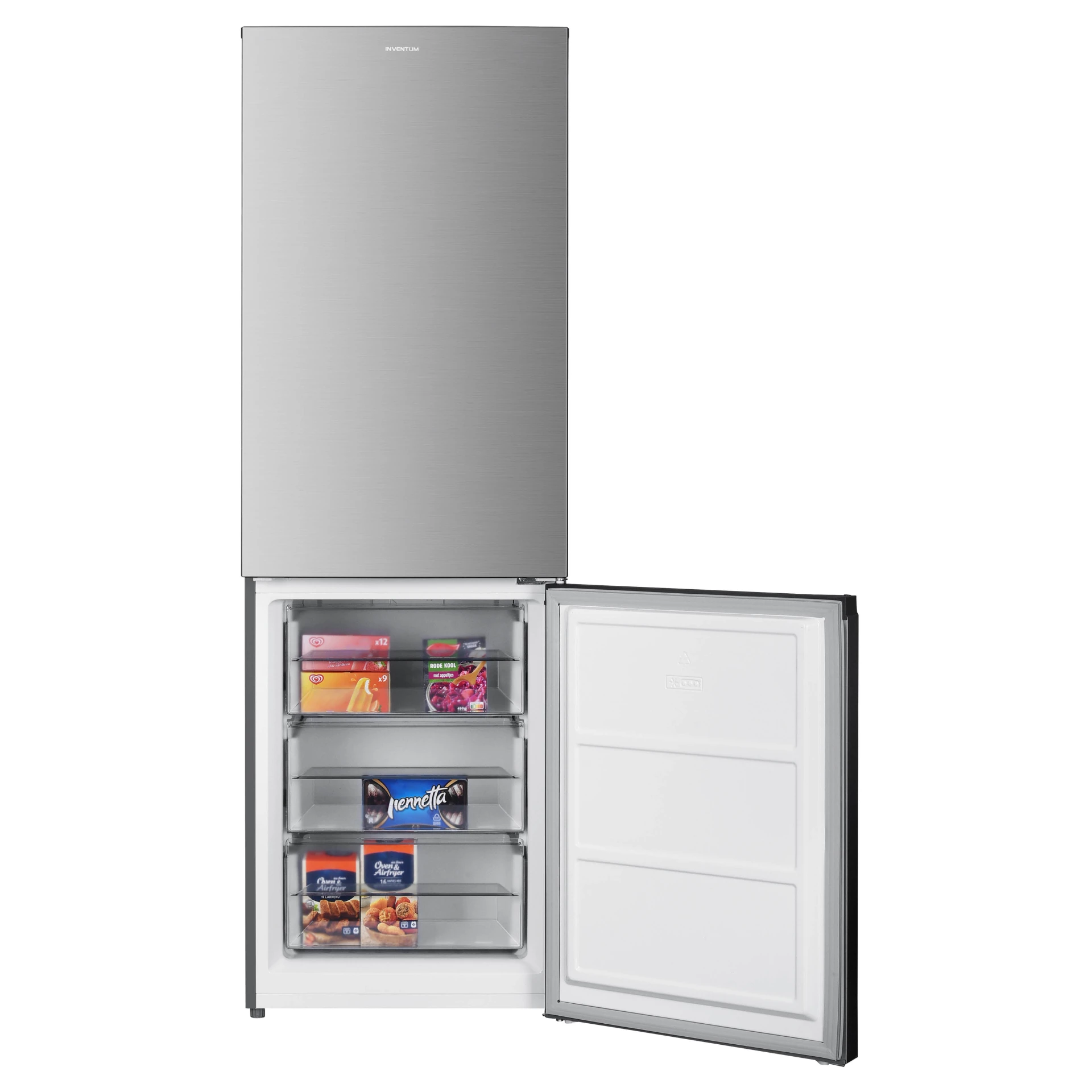 De Inventum vrijstaande koel- vriescombinatie KV1840S met energieklasse C heeft een inhoud van 327 liter. Het ruime koelgedeelte van 221 liter heeft een digitale thermostaat, led-verlichting en een superkoelenstand. Daarmee kun je grote hoeveelheden voedsel snel koelen en daardoor langer bewaren. Je hebt genoeg ruimte voor al je etenswaren op de 4 glazen draagplateaus, in de transparante groentelade en de 3 deurvakken waarvan 1 flessenvak. Het 4 sterren, No Frost vriesgedeelte van deze combi heeft een inhoud van 106 liter. De temperatuur van de vriezer kun je apart instellen. Het invriesvermogen is 5 kg per 24 uur. Dankzij de supervriezenstand kun je etenswaren snel invriezen. Bij dit apparaat ontvang je ook 1 eierrekje en een ijsblokjeshouder. De legplanken, lades en deurvakken zijn eenvoudig te verwijderen, zodat je ze goed kunt schoonmaken.