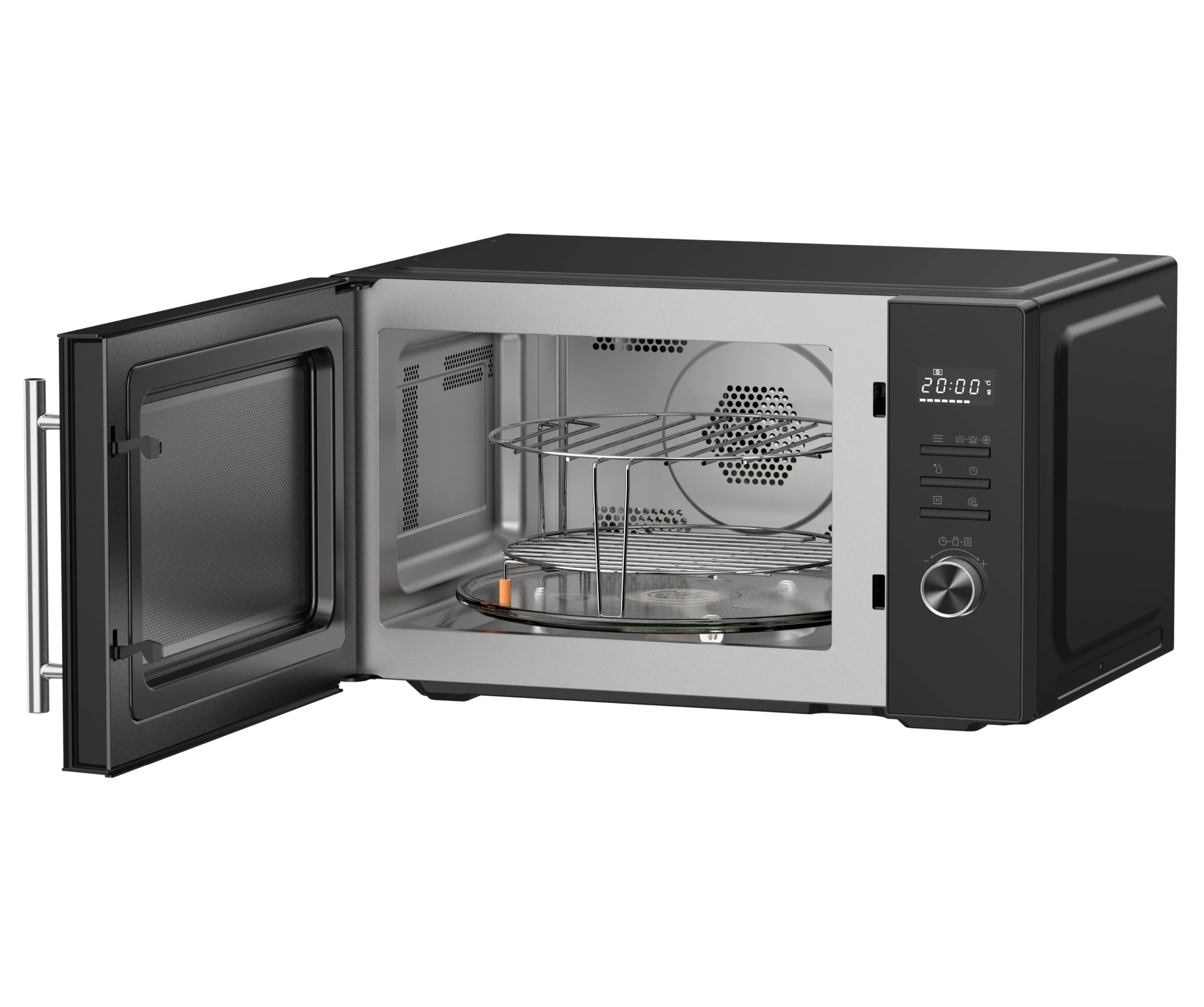 Deze combimagnetron is ook voorzien van een heteluchtoven. Je kunt de oven eventueel voorverwarmen en dan iets bakken zoals in een traditionele oven. Het apparaat is ook voorzien van verschillende handige ovenprogramma's die je kunt gebruiken.