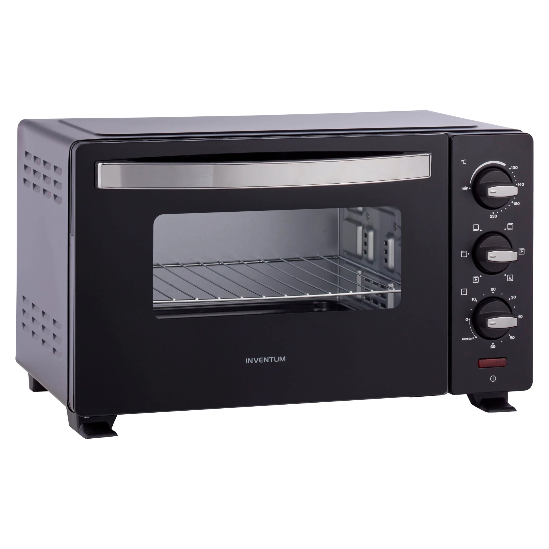 De Inventum vrijstaande heteluchtoven OV207B heeft een netto inhoud van 20 liter. Dit model heeft 6 ovenprogramma's. Door de hetelucht is de temperatuur gelijkmatig verdeeld. Opwarmen gaat extra snel door de 4 verwarmingselelementen. Daarnaast is de oven voorzien van een timer. Het apparaat wordt standaard geleverd met een bakplaat en een ovenrooster.