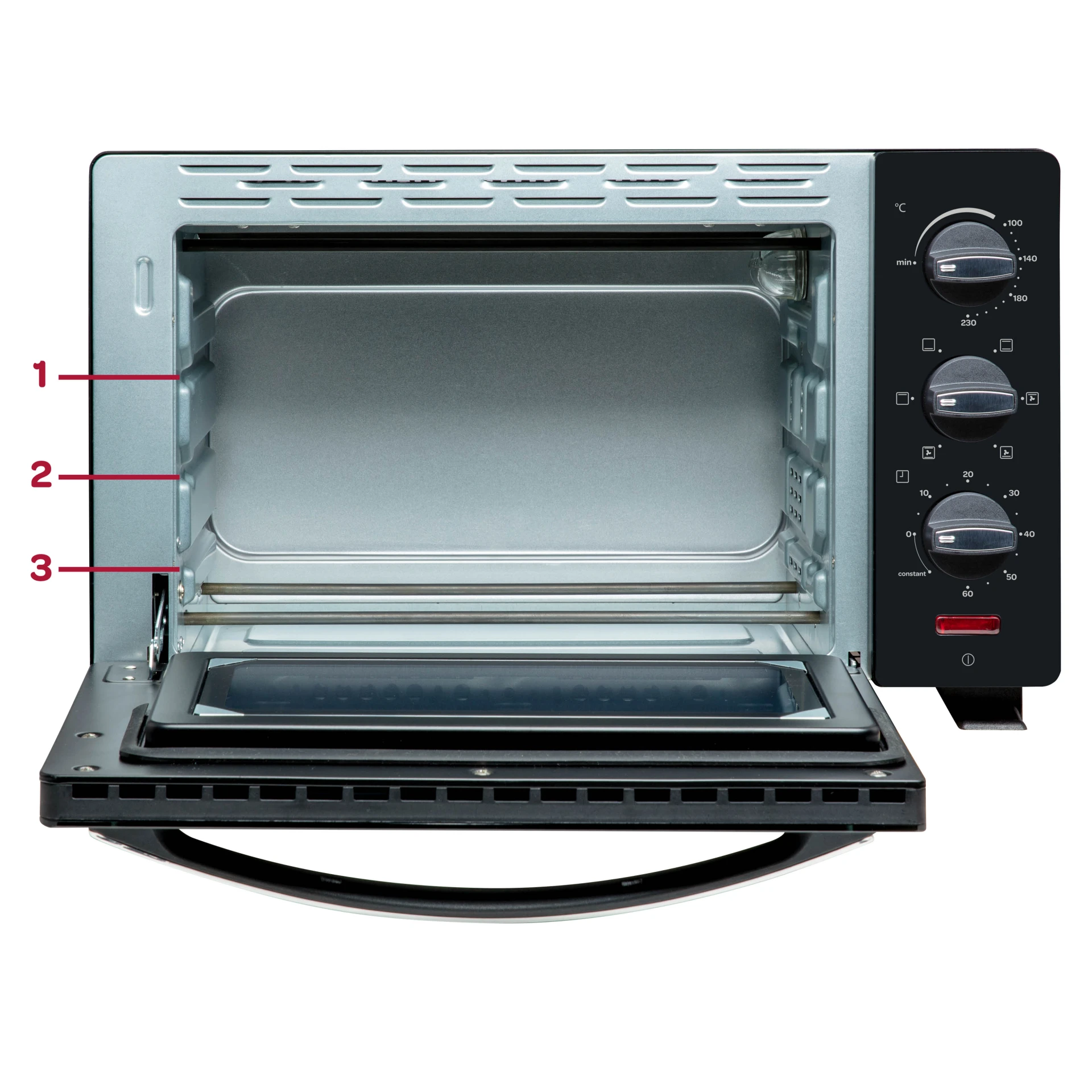 Schoonmaken van de oven is heel eenvoudig. Na ieder gebruik, als de oven nog lauw is, veeg je de oven schoon met zachte vochtige doek met een beetje afwasmiddel. Het rooster, de bak- en kruimelplaat en de handgreep kunnen in de vaatwasmachine.