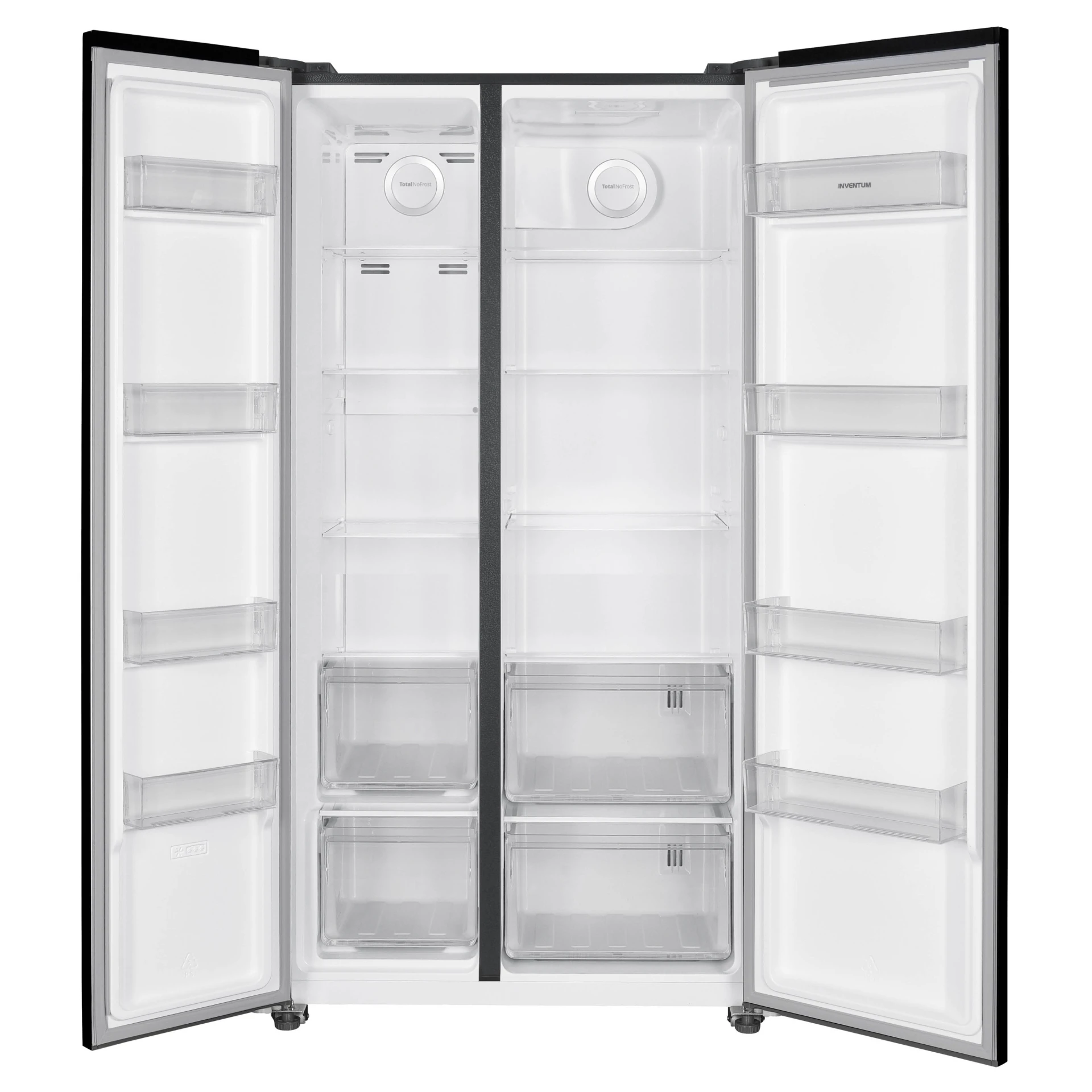 De zeer zuinige Inventum Amerikaanse koelkast SKV0180B heeft een totale inhoud van 532 liter en energieklasse C. Het koelgedeelte met superkoelen heeft een inhoud van 347 liter en 4 draagplateaus met onderin 2 transparante groentelades. Het 4 sterren No Frost vriesgedeelte met supervriezen en een inhoud van 185 liter heeft een invriesvermogen van 14 kg/24u. De vriezer heeft 4 draagplateaus en 2 transparante lades. Verder is de koelkast voorzien van energiezuinige led-verlichting, zowel in het koel- als in het vriesgedeelte. Met de deurvakken in beide deuren berg je al je etenswaren netjes op. Deze onderdelen zijn eenvoudig te verwijderen, zodat je ze goed kunt schoonmaken.