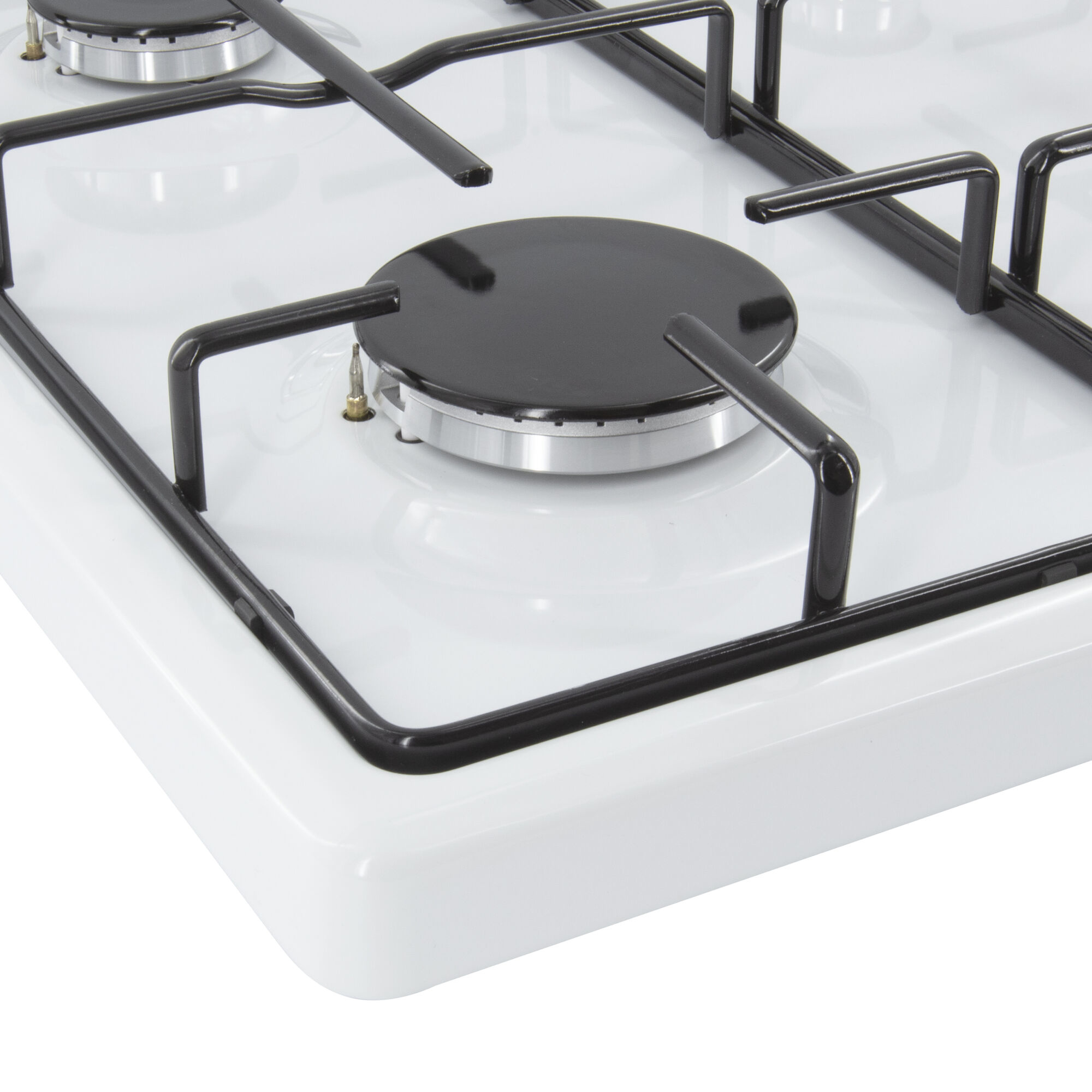 De Inventum vrijstaande gaskookplaat VKG6008WIT heeft 4 branders, waaronder 1 sterkbrander en 1 sudderbrander. De kookplaat heeft bandstalen pandragers en en de vangschaal is van wit emaille. Je bedient het apparaat eenvoudig met draaiknoppen aan de zijkant. Door de handige geïntegreerde vonkontsteking heb je geen gasaansteker of lucifers meer nodig. Daarnaast heeft deze gaskookplaat vlambeveiliging. De gastoevoer wordt automatisch afgesloten als de vlam uitgaat. Zo zet je veilig, gemakkelijk en snel een maaltijd op tafel.