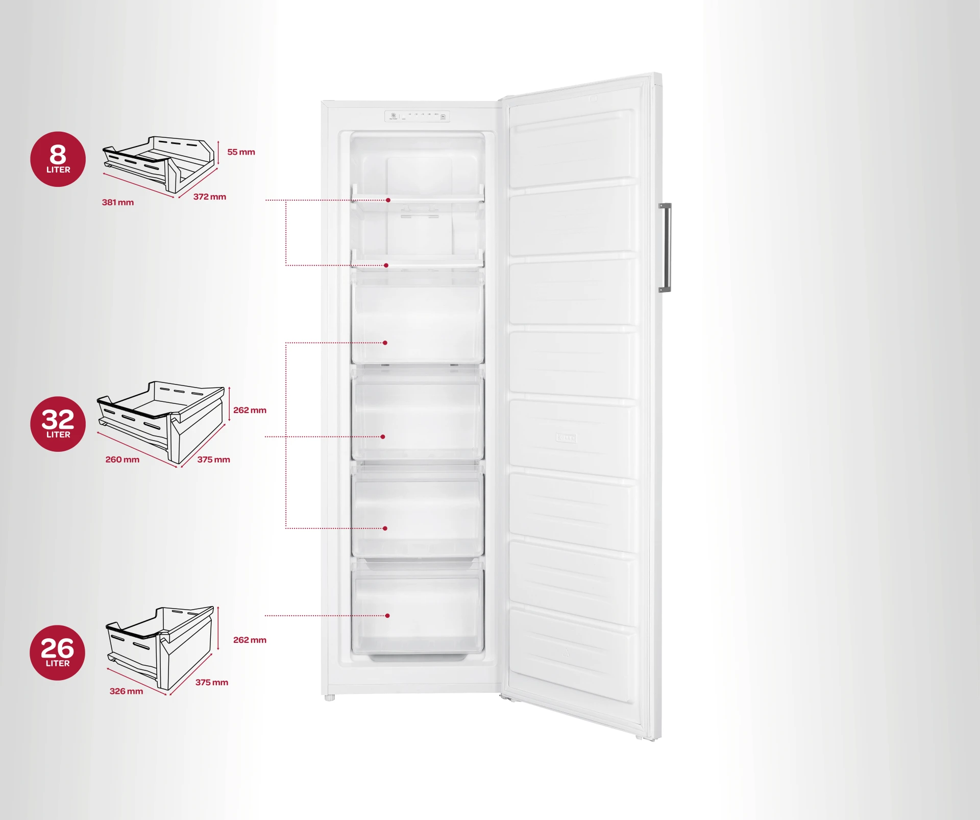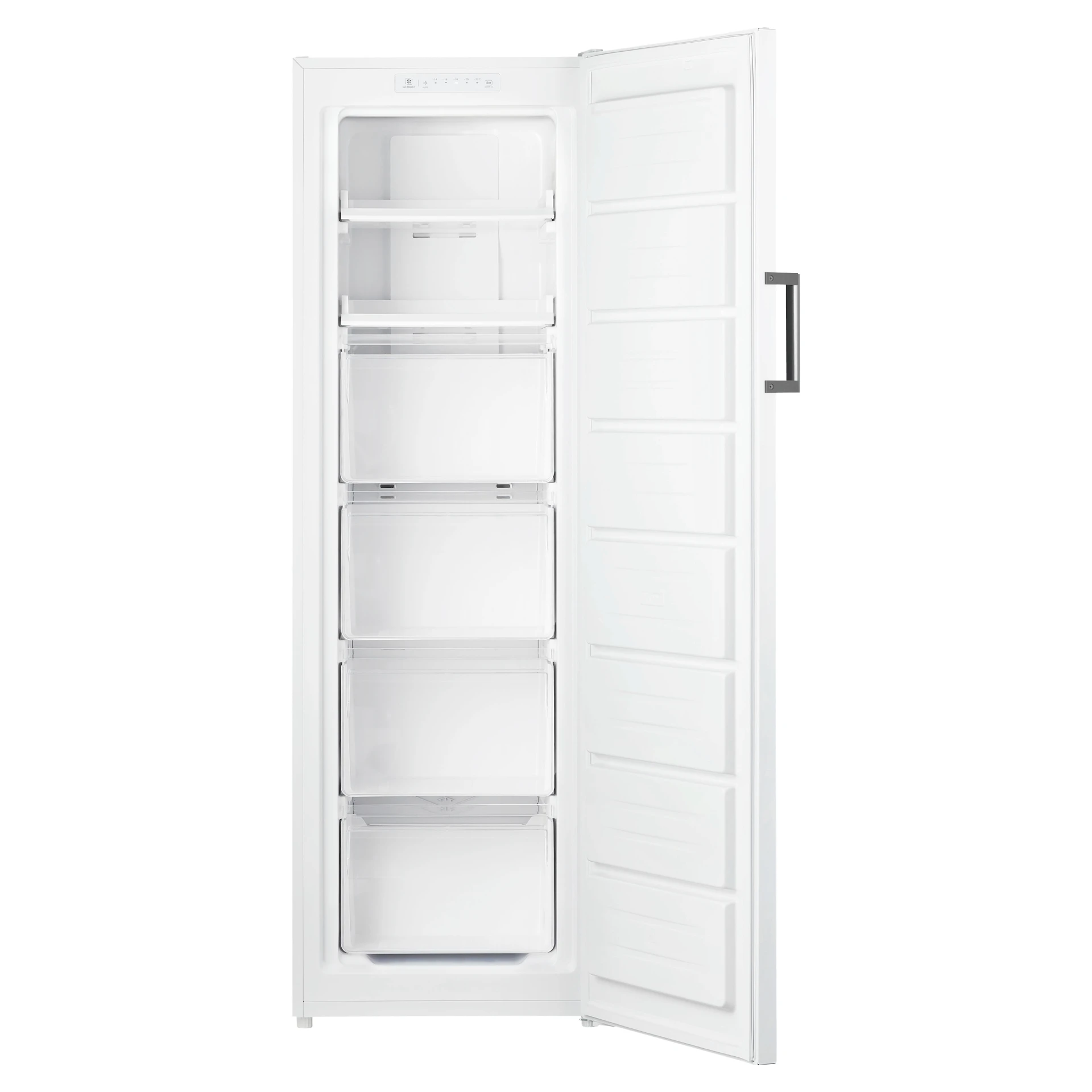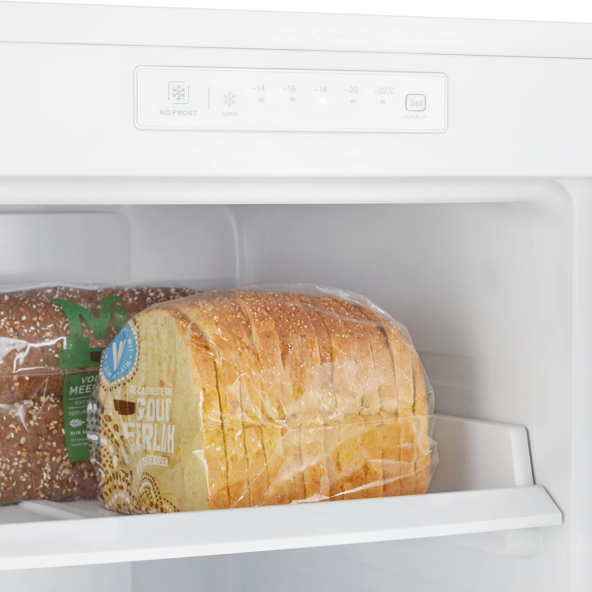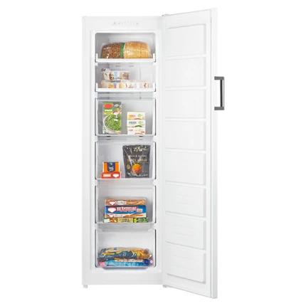 De Inventum vrijstaande vriezer VR1682W heeft een netto inhoud van 204 liter. Het is een hoog model met 4-sterren, energieklasse D, No Frost en supervriezen. Het invriesvermogen is 13 kg/24u. In de 4 transparante lades en 2 open lades berg je al je etenswaren netjes op. Het apparaat is makkelijk te plaatsen en kun je ook in ruimtes gebruiken waar het niet kouder wordt dan -15°C, zoals een garage. De deur kun je links- of rechtsdraaiend maken.