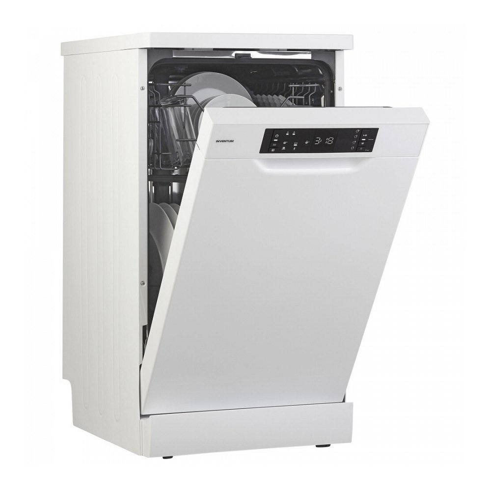 De smalle Inventum vrijstaande vaatwasser VVW4530AW is geschikt voor 10 couverts, heeft een digitaal display en een in hoogte verstelbare bovenkorf. Deze vaatwasser met energie-efficiëntieklasse E verbruikt per wasbeurt slechts 11 liter water. Je hebt de keuze uit vijf programma's, waaronder een ECO stand en een hygiëne stand voor erg vuile vaat. Heb je een keer weinig vaat, kies dan voor de optie halve belading. Het gekozen programma wordt dan sneller en minder intensief gedraaid, waardoor je tijd, energie en water bespaart. Daarnaast is het met de uitgestelde start mogelijk om het gekozen programma tot 24 uur later te laten starten. Omdat veiligheid voorop staat, heeft deze vaatwasmachine een roestvrijstalen kuip en een Aquastop. Wateroverlast is daarmee voorgoed verleden tijd!