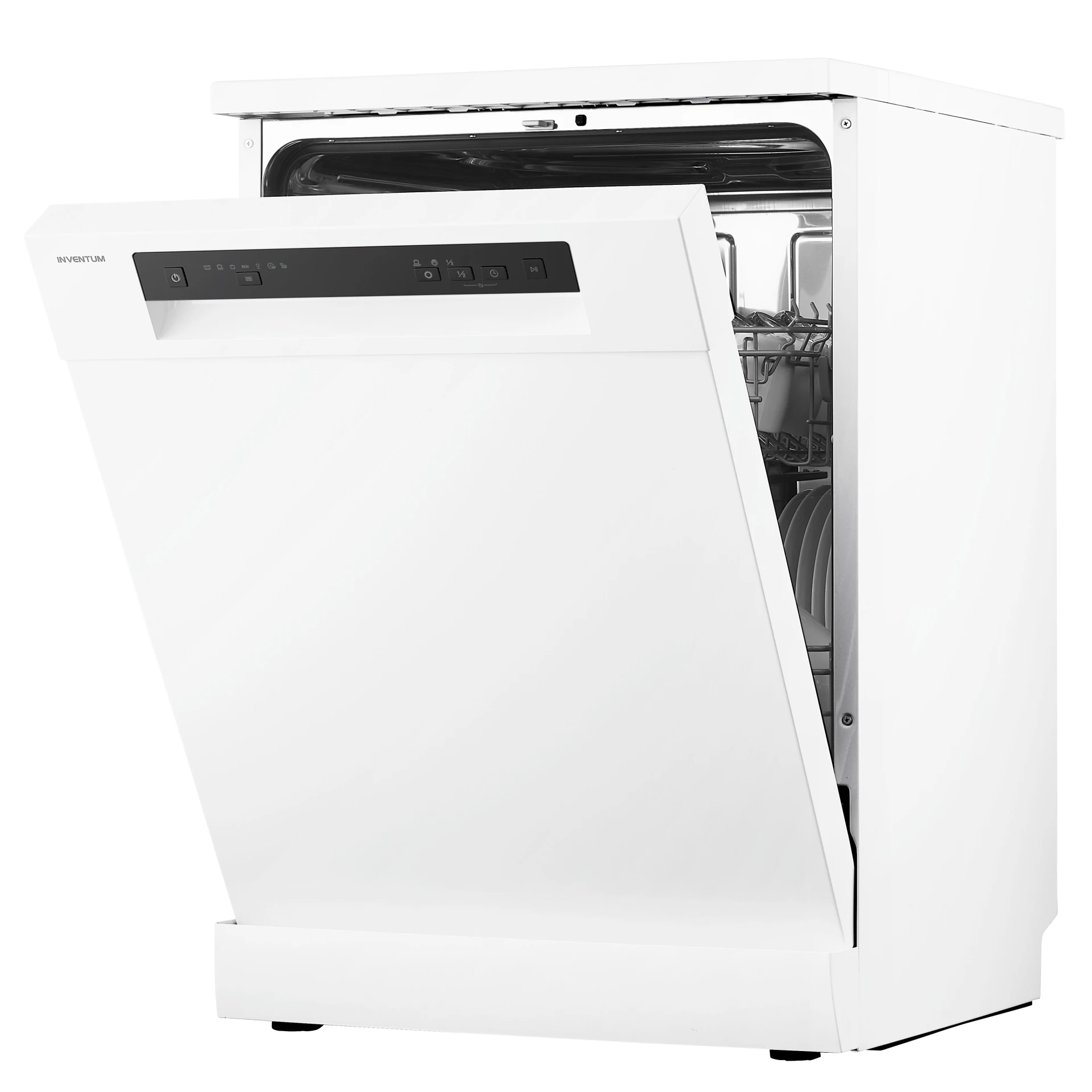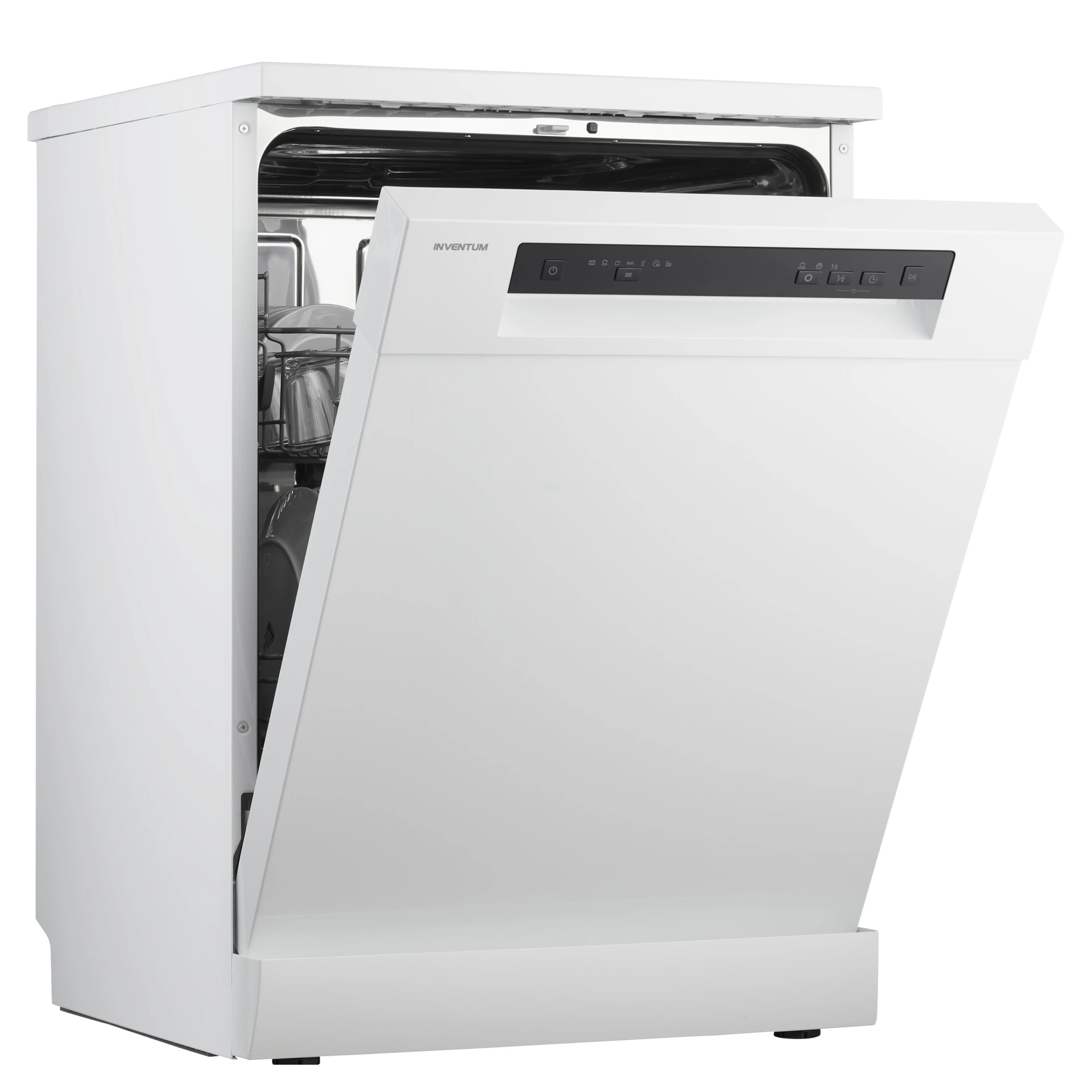 De Inventum vrijstaande vaatwasser VVW6036AW is geschikt voor 14 couverts, heeft een digitaal display en een in hoogte verstelbare bovenkorf. Deze vaatwasser met energieklasse D verbruikt per wasbeurt slechts 11 liter water. Je hebt de keuze uit 7 programma's, waaronder een eco-programma en een intensief programma voor erg vuile vaat. Heb je een keer weinig vaat, kies dan voor de optie halve belading. Het gekozen programma wordt dan sneller en minder intensief gedraaid, waardoor je tijd, energie en water bespaart. Voor nog drogere vaat kun je instellen dat de deur van de vaatwasser automatisch open gaat aan het einde van een programma. Daarnaast is het met de uitgestelde start mogelijk om het gekozen programma tot 24 uur later te laten starten. Omdat veiligheid voorop staat, heeft deze vaatwasmachine een roestvrijstalen kuip en een aquastop. Wateroverlast is daarmee voorgoed verleden tijd!