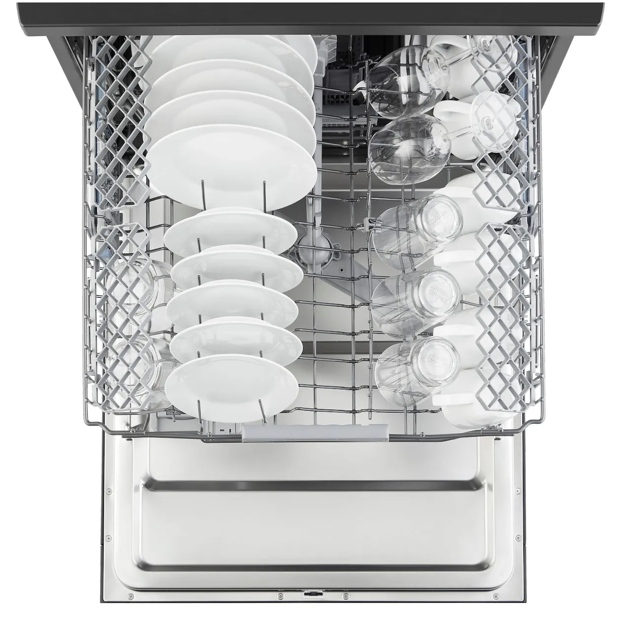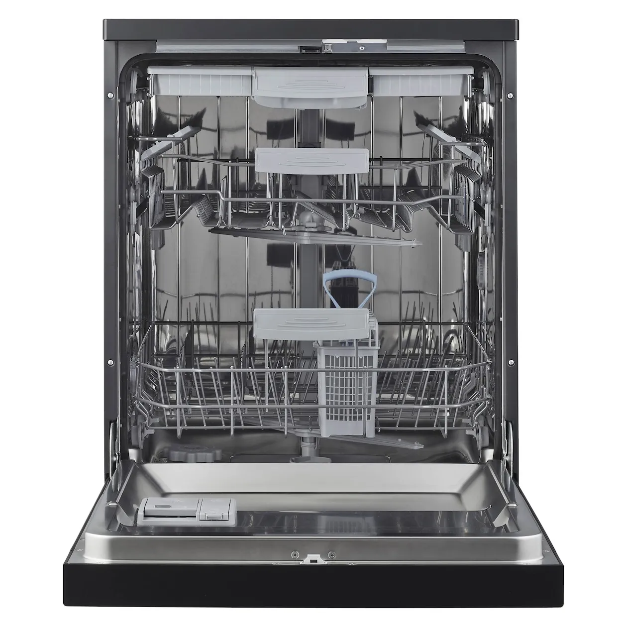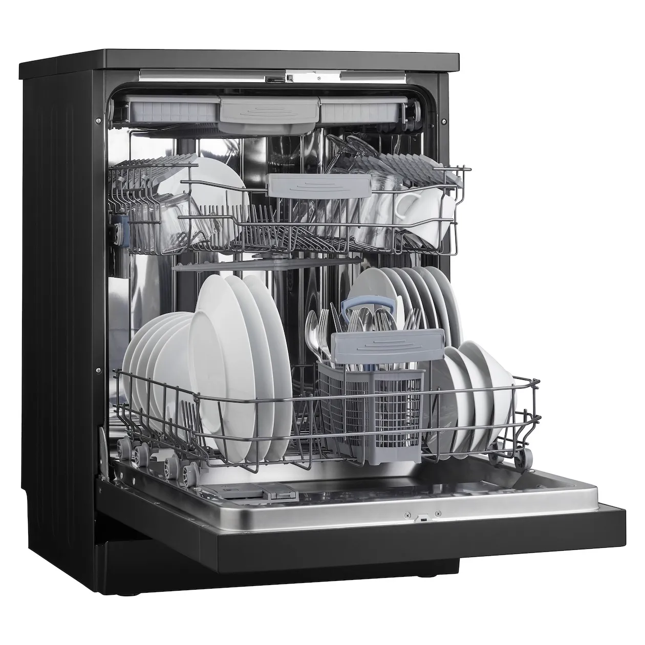 Besteklade bovenin en bestekmandje onderin de vaatwasser