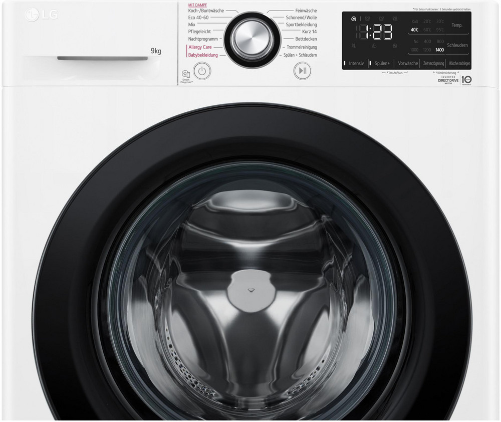 De LG Steam™-technologie verwijdert 99,9% van de meest voorkomende allergenen zoals huisstofmijt die een allergie of ademhalingsproblemen kunnen veroorzaken. Steam™ wordt automatisch toepast tijdens het Anti-allergie en babykleding programma en is niet apart toe te voegen aan de andere programma's.