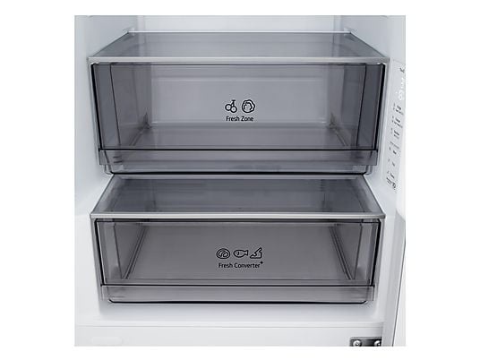 Binnenuitrusting Transparante vrieslades / Temperatuurweergave / Uittrekbare glasplaat / IJsblokjeshouder / Deurvakken / Groente- en fruitlades / Big Box / Binnenverlichting