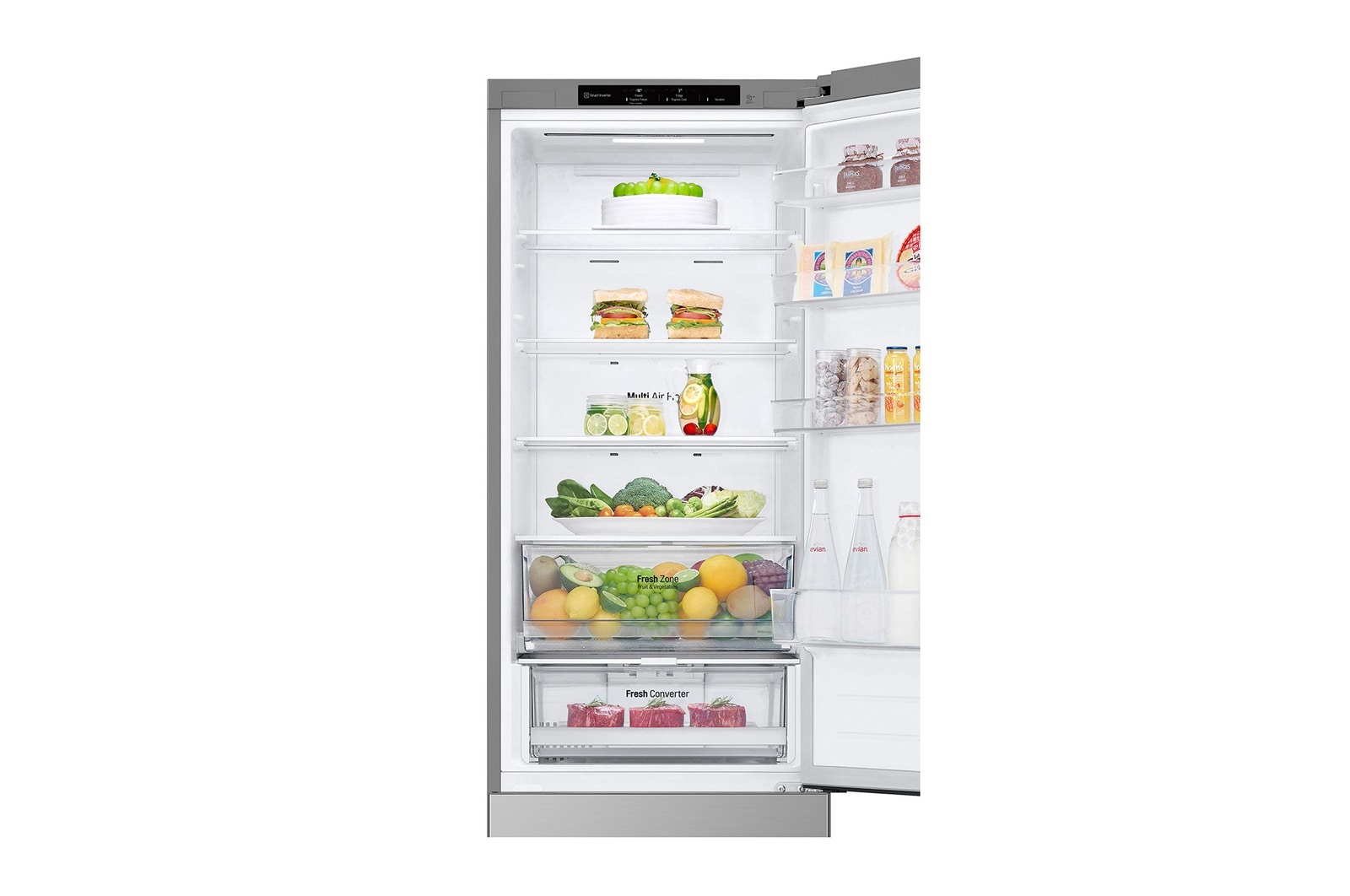DoorCooling+™ maakt het mogelijk om sneller en gelijkmatiger naar de deurzijden te koelen. Dit zorgt niet alleen dat drankjes koeler blijven met speciale luchtopeningen, maar zorgt ook dat voedsel in elk gedeelte van de koelkast net zo vers blijft.
